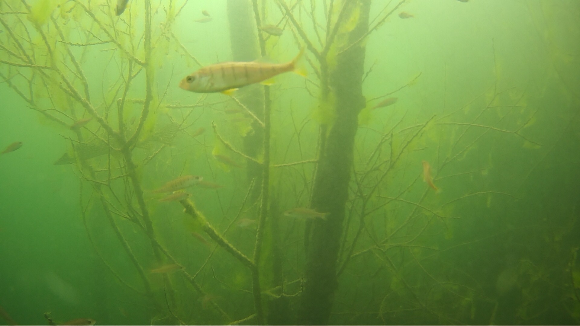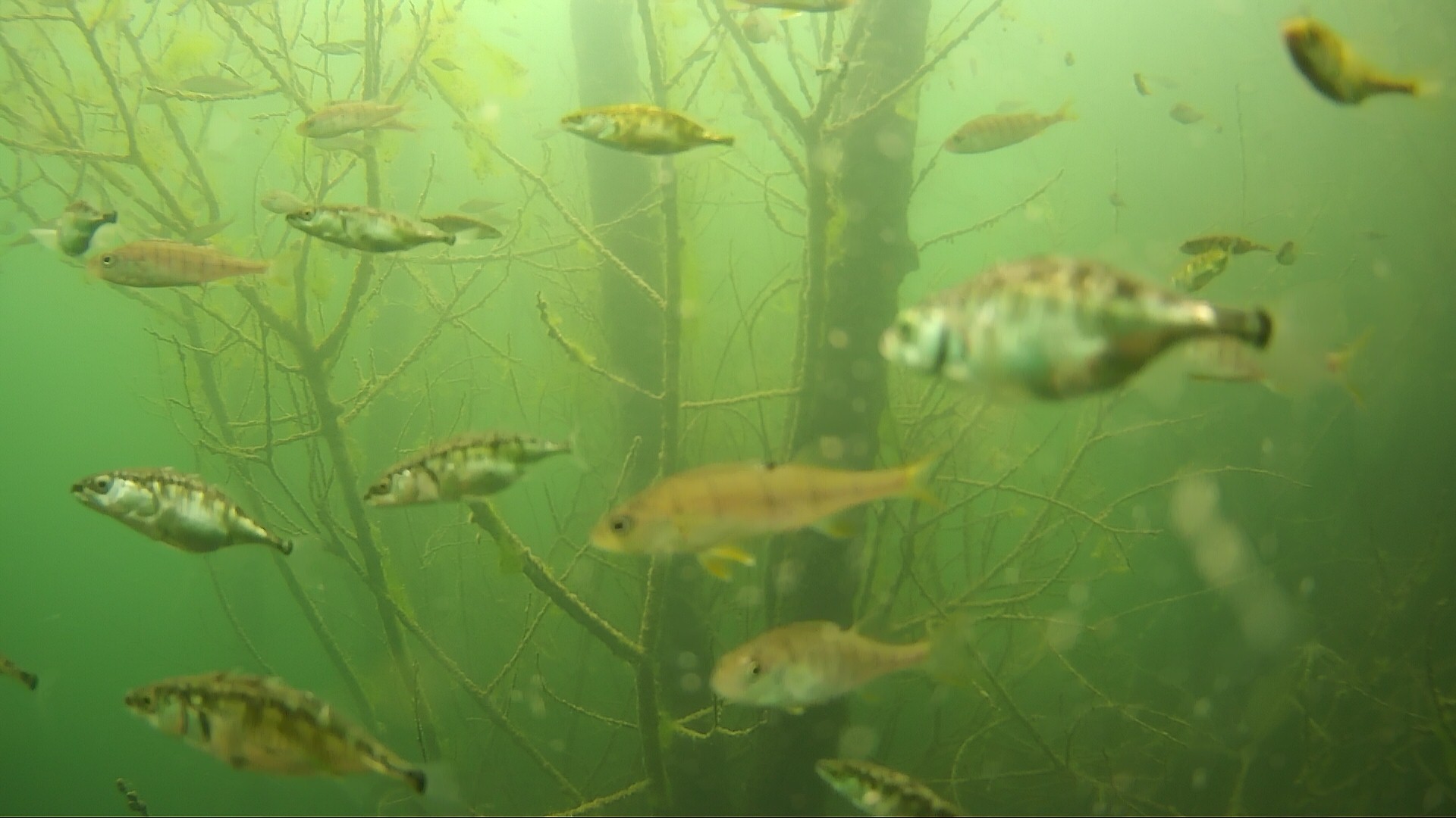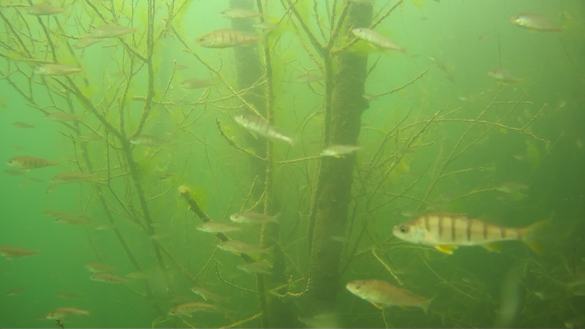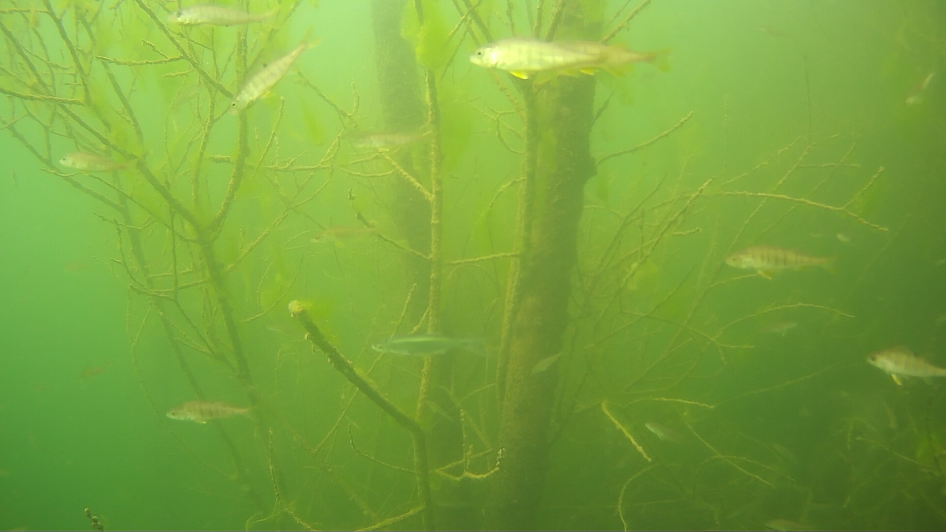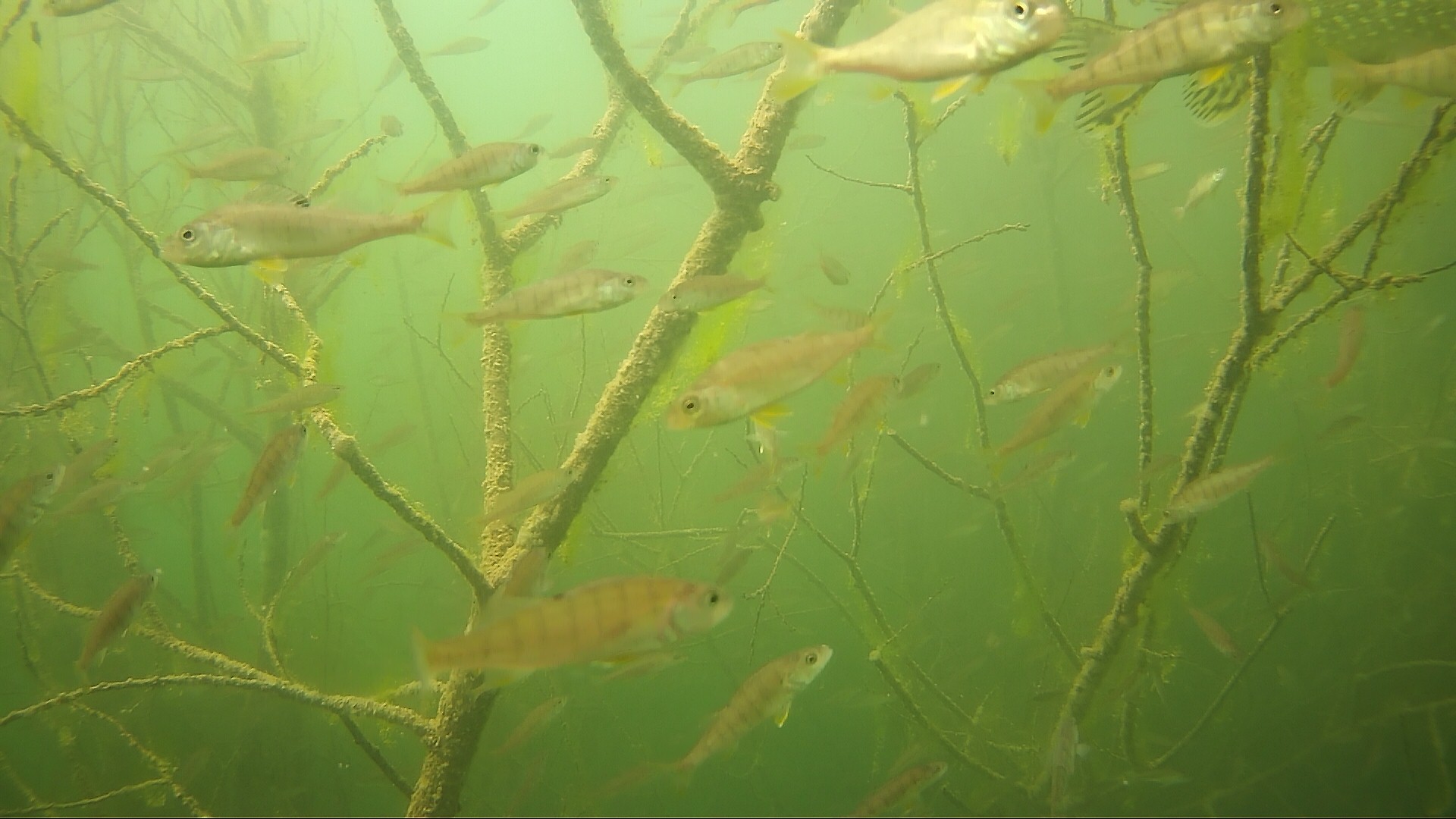 27.05.2020 – Kurz vor neun Uhr morgens wandern die Barsche von links nach rechts.