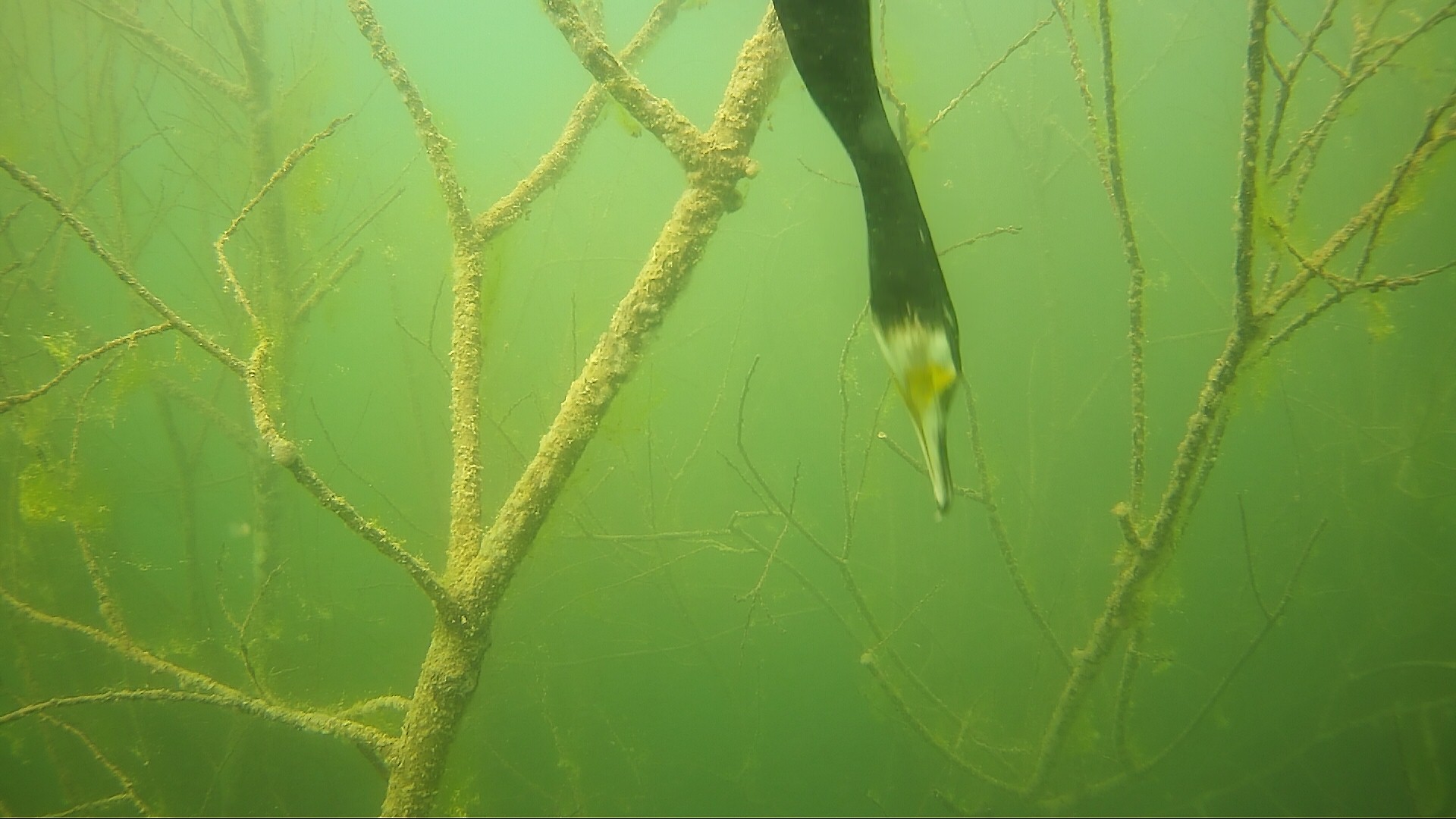 18.05.2020 - Kormoran und Hecht, zwei Jäger zur gleichen Zeit am Fischreiser. Seht ihr die weisse Halskrause? Das ist unser „Haus“Kormoran