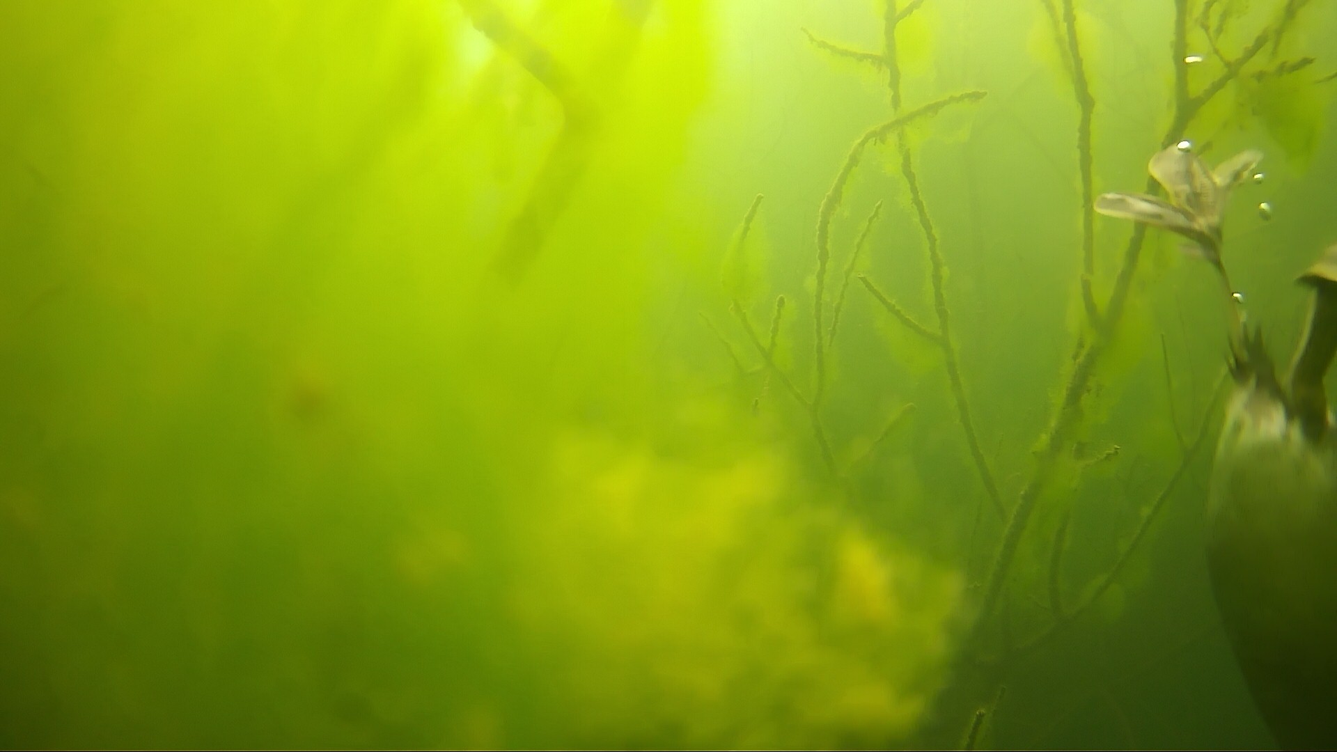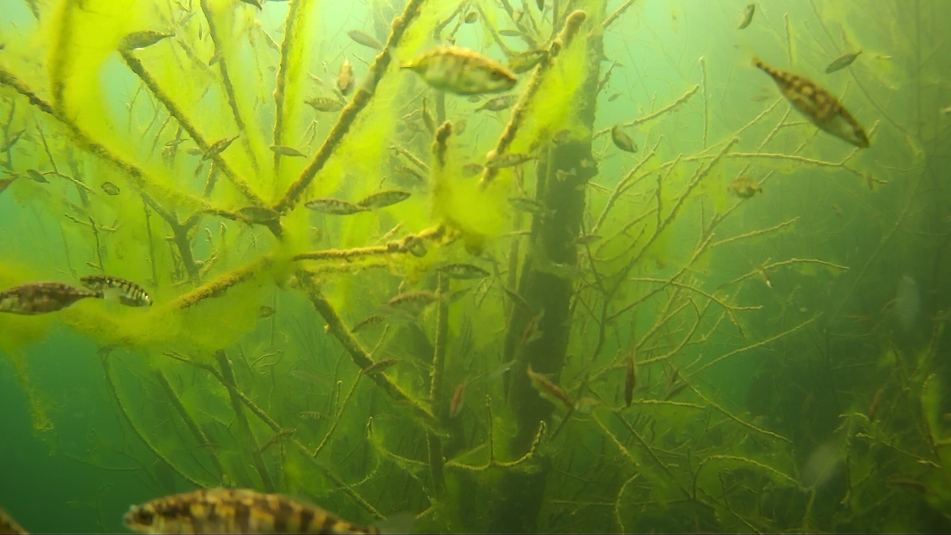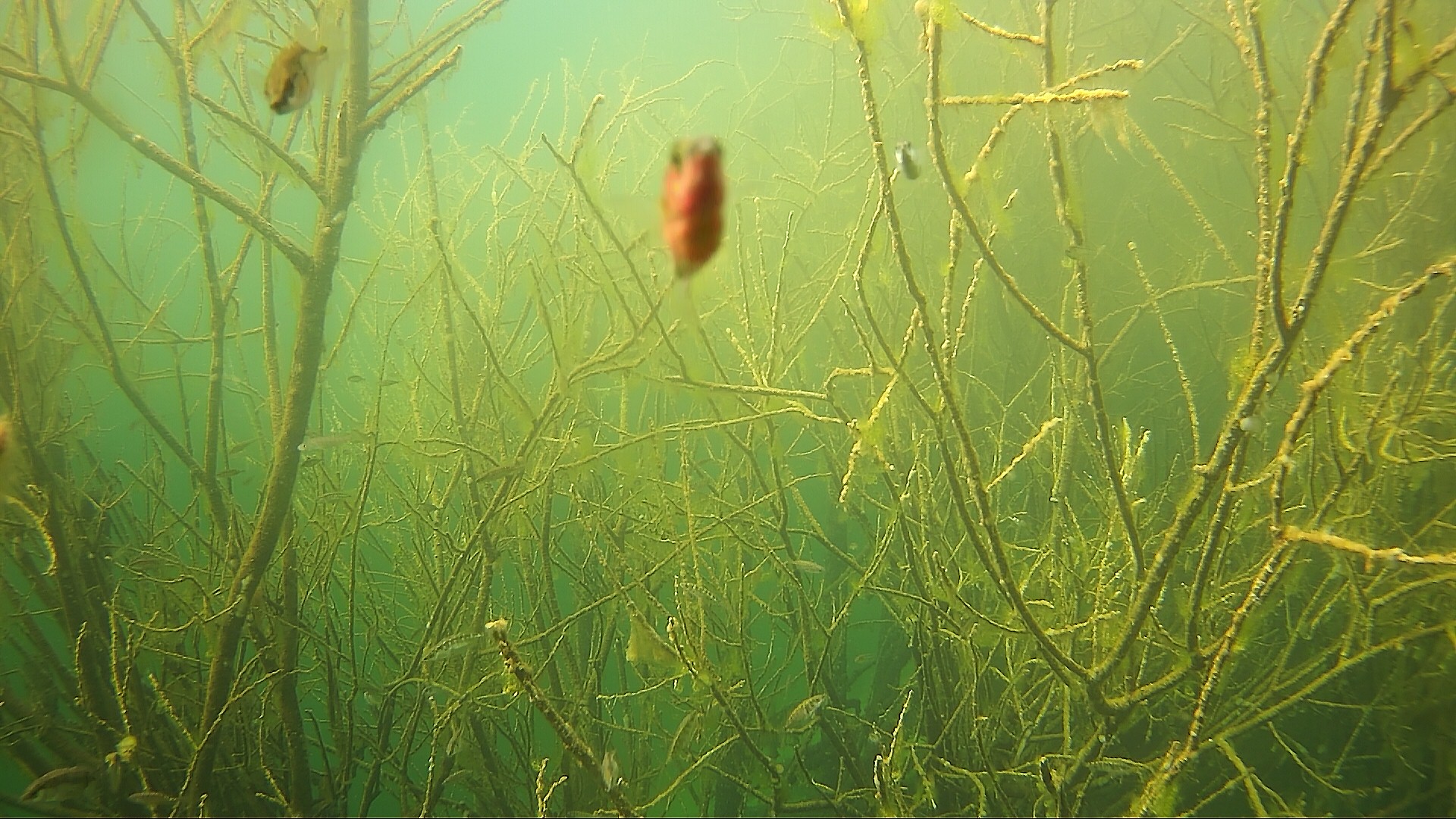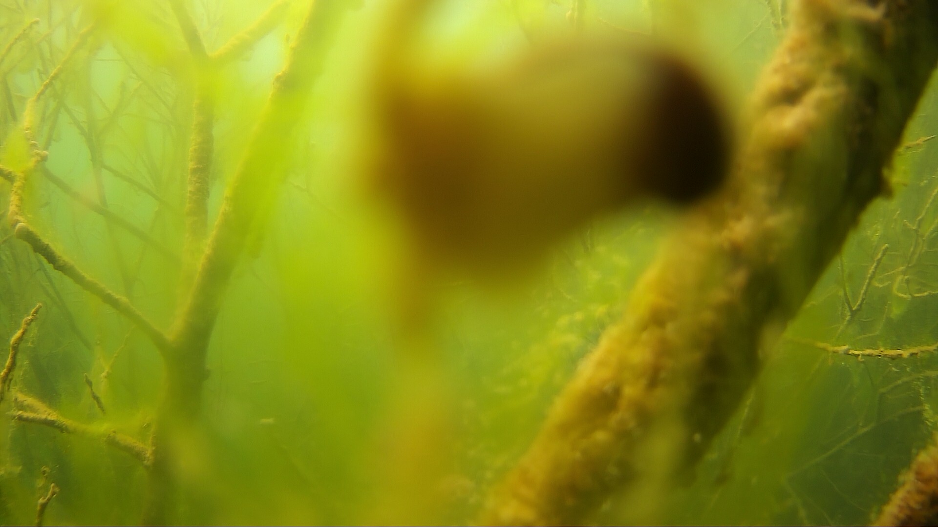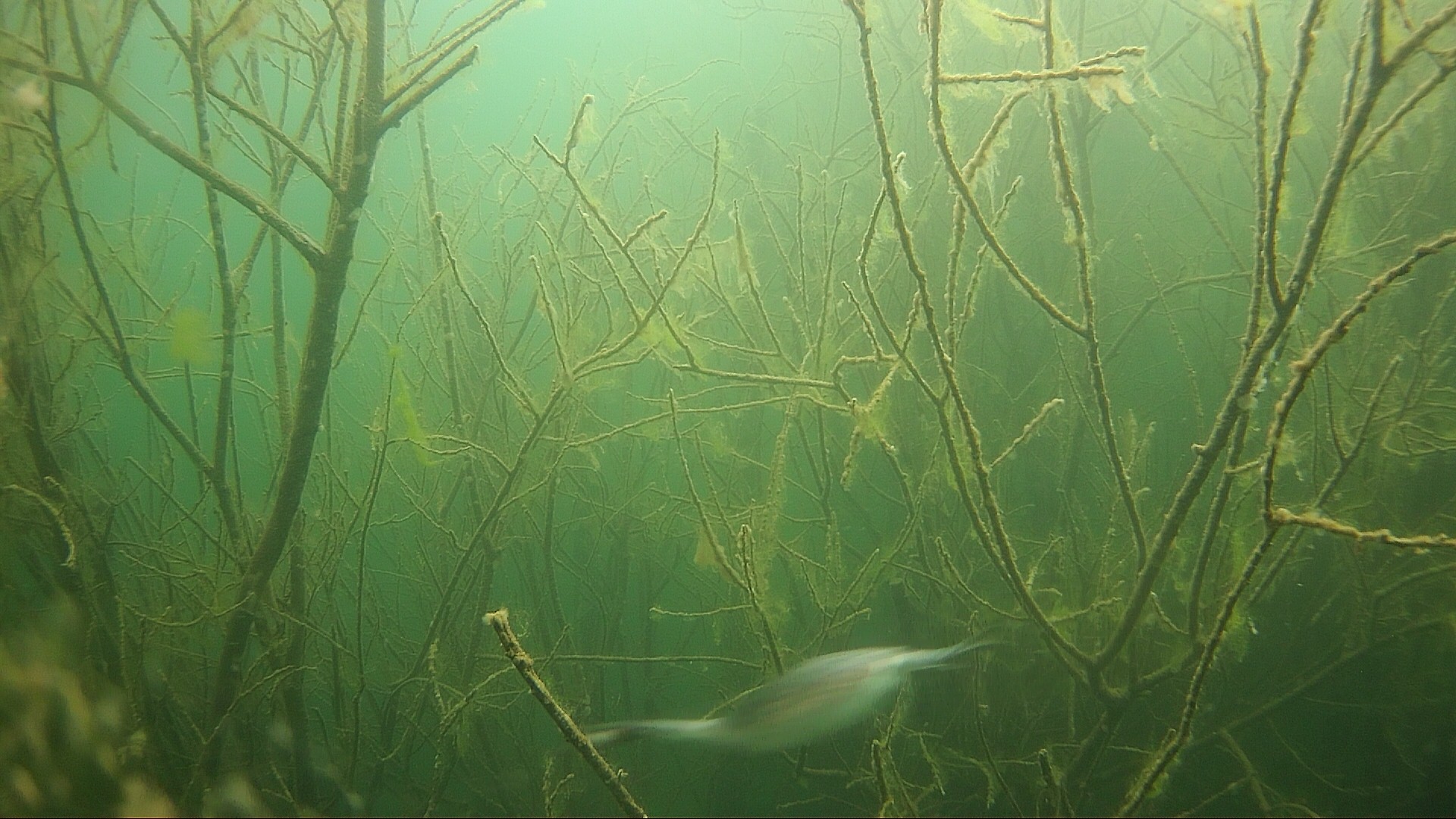 15.04.2020 – Es ist starke Strömung im Bodensee, ein Ast hat sich vor die Kamera gestellt. Da schaut auch der Stichling interessiert vorbei.