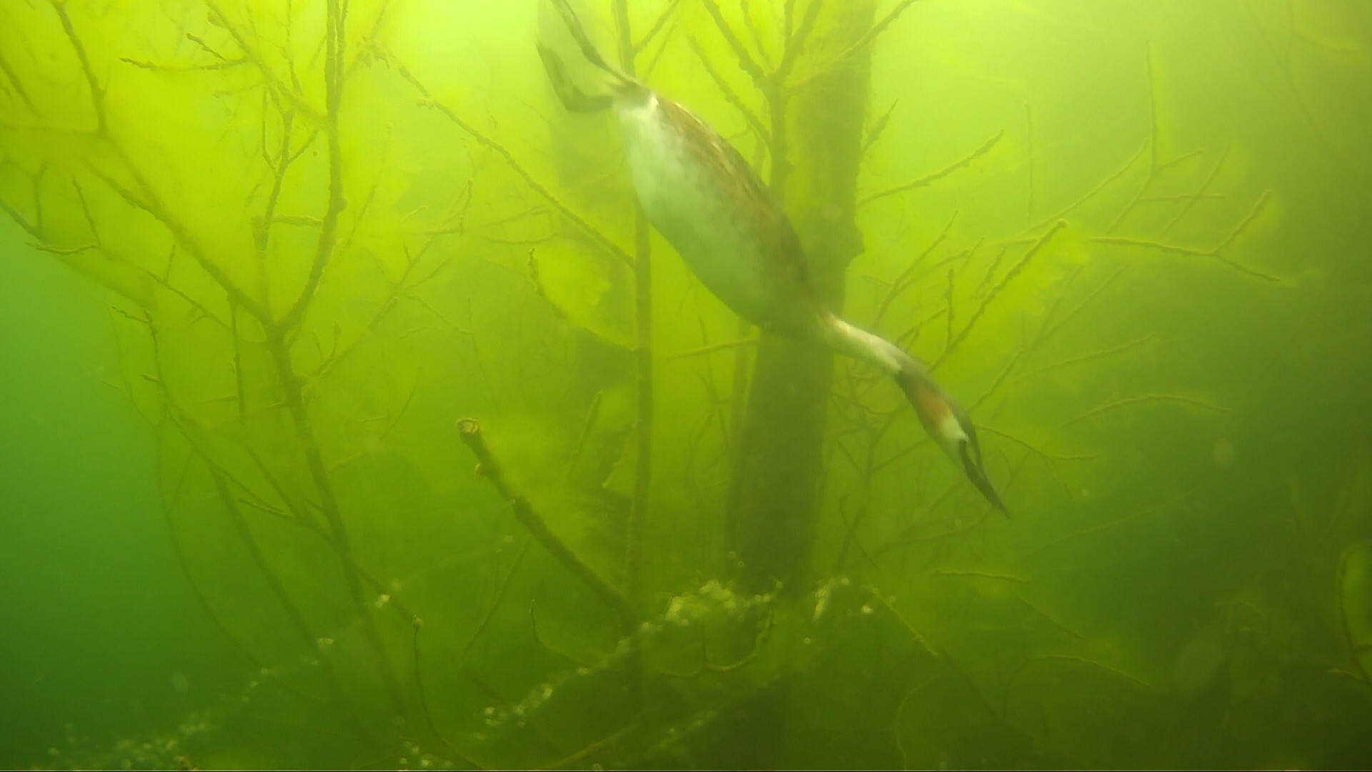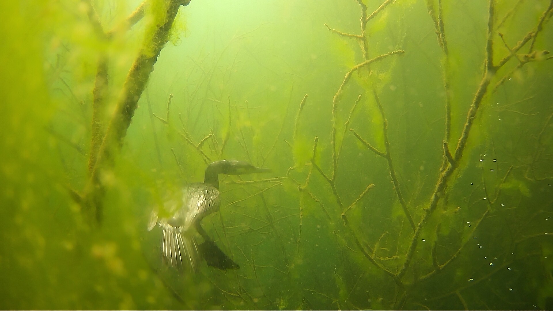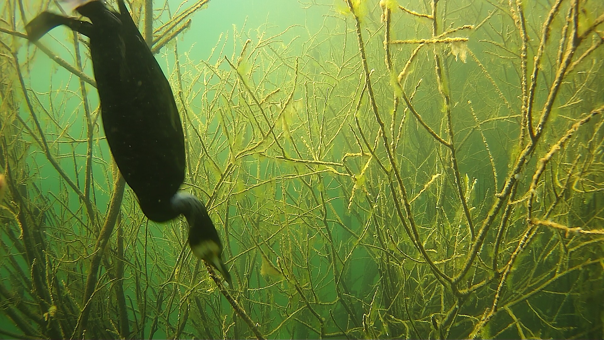 03.05.2020 - Haubi beim Jagen. Dick ist er noch nicht geworden und man könnte meinen es gibt keine Fische. Naja, wenn Haubi abtaucht, verschwinden die Fische ganz schnell und kommen erst nach ein paar Minuten wieder zum Vorschein.