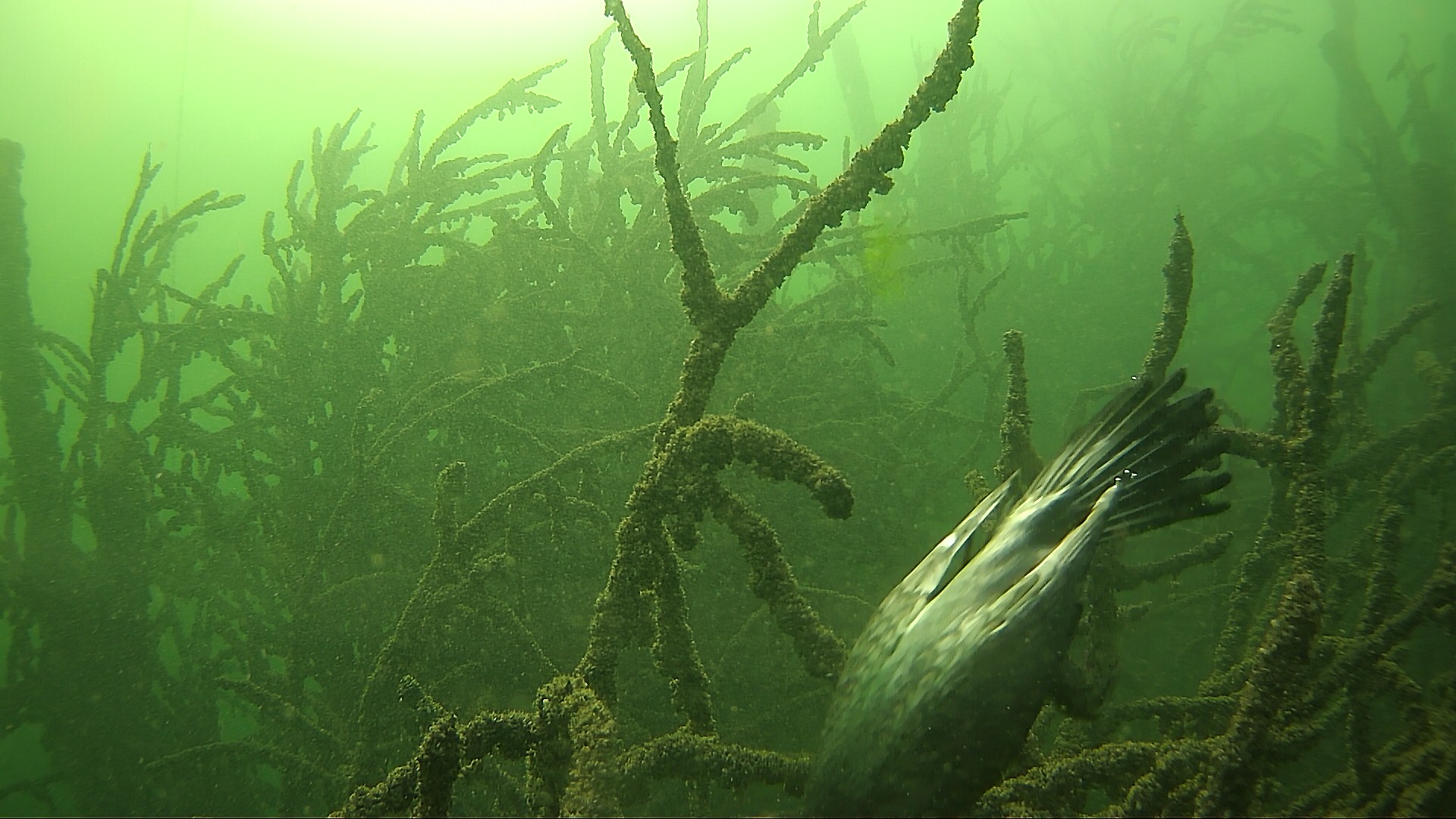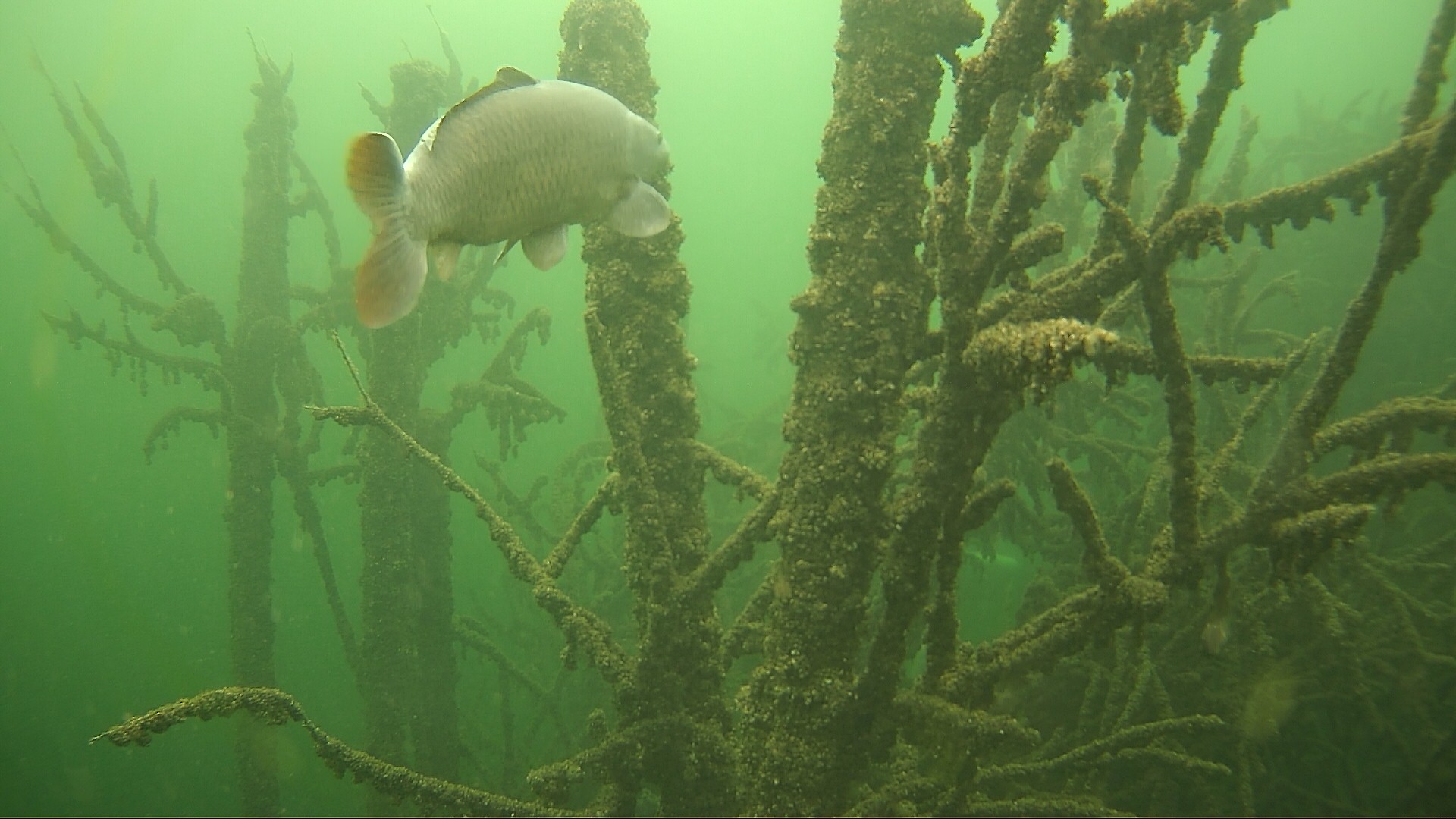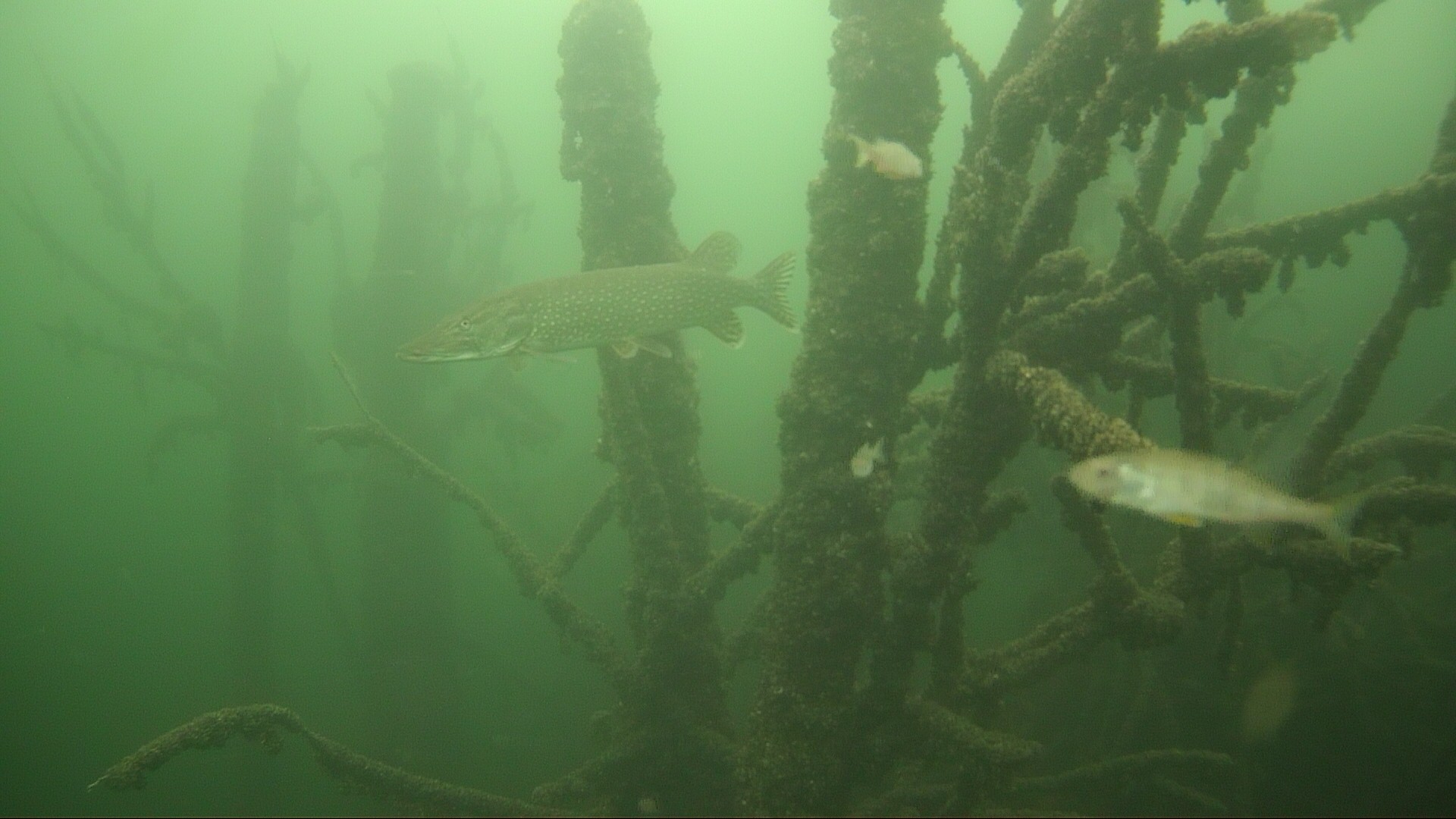 18.11.2020 – Trübe ist es weiterhin, die Fischmengen werden geringer, der Hecht wird aber gut durch den Winter kommen, er wird mit seiner Größe passende Nahrung finden.