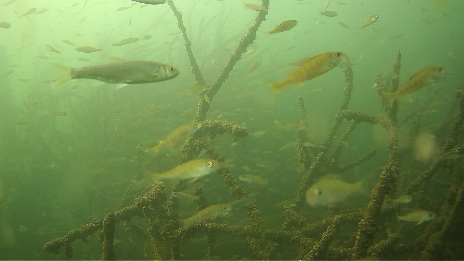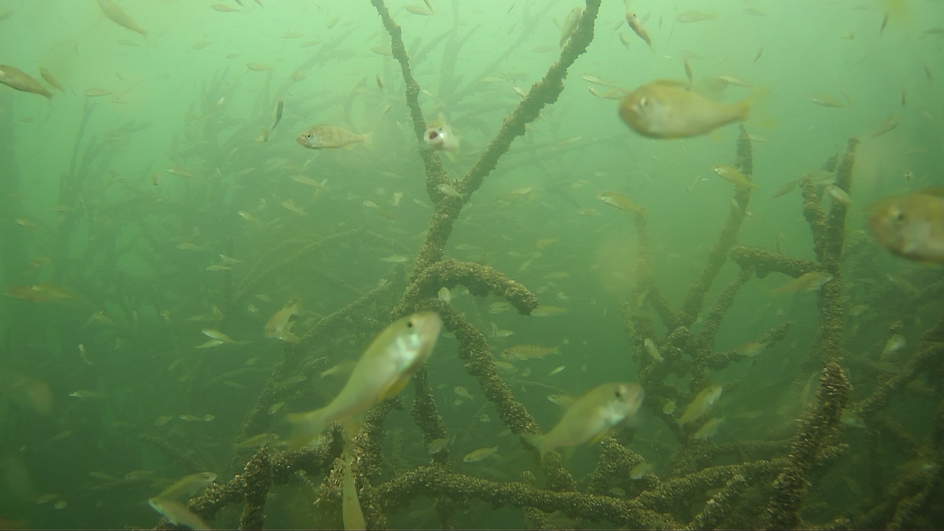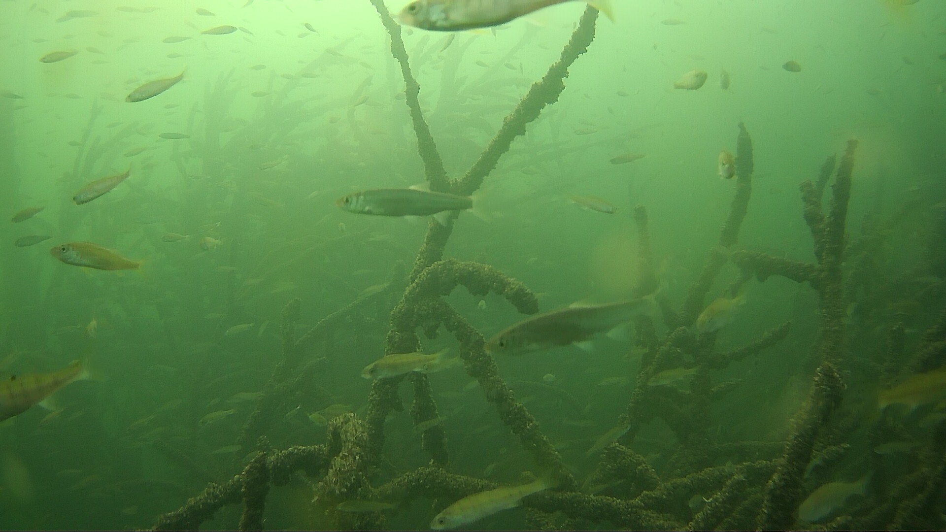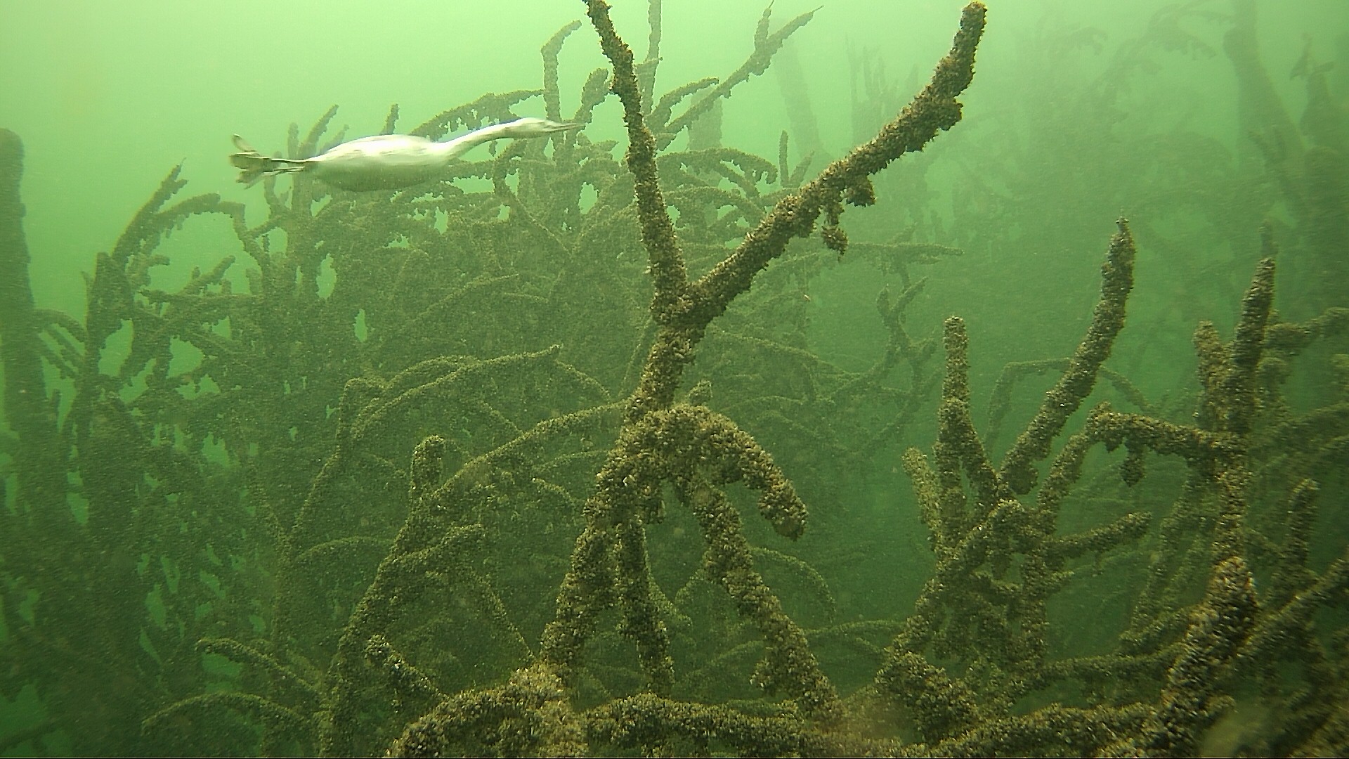 18.11.2020 – Trübe ist es weiterhin, die Fischmengen werden geringer, der Hecht wird aber gut durch den Winter kommen, er wird mit seiner Größe passende Nahrung finden.
