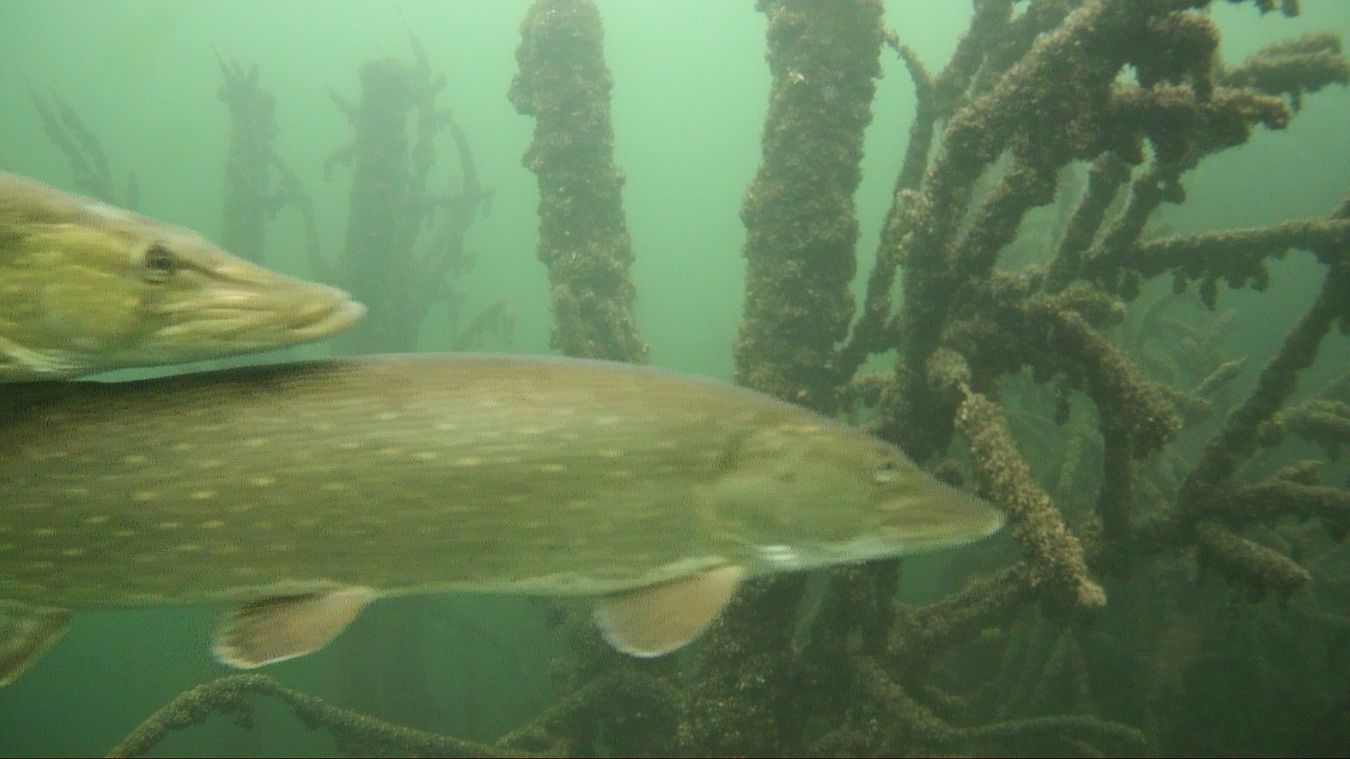 28.11.2020 – Wer den Livestream immer mal wieder anschaut, wird schon festgestellt haben, dass ein Hecht sehr häufig zu sehen ist. Zwei hingegen ist ein Bild in unserer Galerie wert.