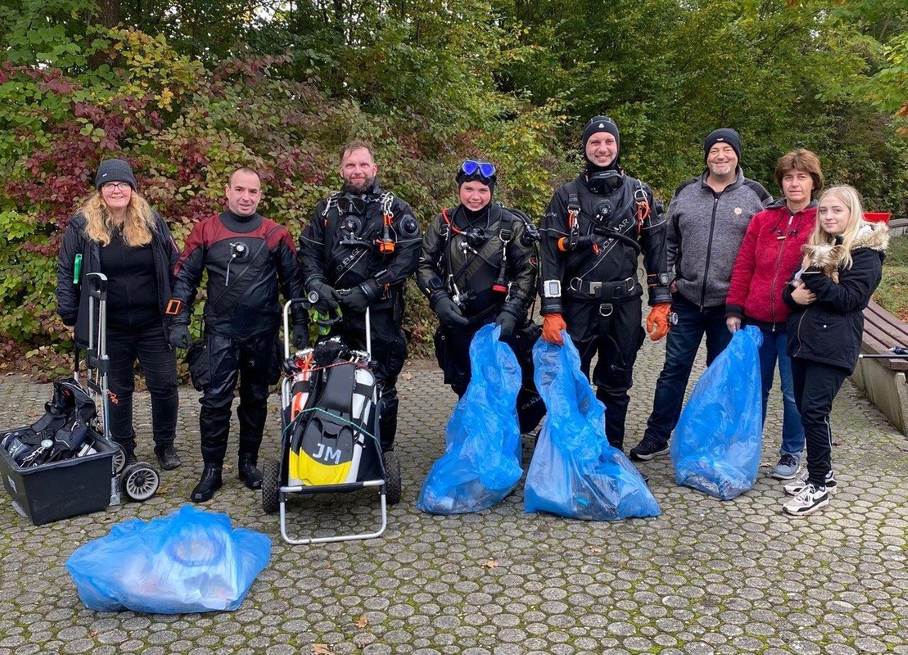 Forst lud seine Bewohner zu einer Gemarkungsputzaktion im Oktober ein. Die BTSV Vereine, die auch im Sommer im Freizeitpark Gewässeraufsicht machen, waren dabei und „putzten“ - na klar - den Heidesee. Obwohl die Taucher seit einigen Jahren bei ihren Spaßtauchgängen auch schon den einen oder anderen Müll aus dem Gewässer entnehmen, fanden die 14 Aktiven aus drei BTSV Vereinen doch noch weit mehr, als erwartet. Die Nichttaucher durchstreiften ebenso erfolgreich den Uferbereich.