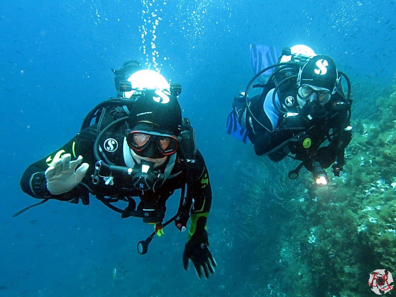 Am nächsten Morgen standen alle schon früh auf den Beinen um wieder Tauchen zu gehen, doch dann die Ernüchterung, “Der Hafen und das Meer vor le Dramont seien militärisches Sperrgebiet, weil eine alte Bombe entschärft wird“, na Super. Somit konnten wir das Tauchen vom Boot an diesem Morgen vergessen. Am Mittag ging es dann nach langem hin und her auf der Tauchbasis mit dem Tauchzeugs im Auto in den Nachbarort Agay und von dort aus mit einem anderem Boot zu den Tauchplätzen außerhalb der Speerzone. Das Tauchen war jedoch dadurch nicht weniger schön und abgesehen von den Feuerquallen im Wasser, welcher der Sturm angespült hatte, war es doch erstaunlich entspannt. An diesem Abend gab es etwas ganz besonderes, und zwar ein Nachttauchgang. Dabei liegt der Fokus nur auf dem kleinen Lichtkegel der Taucherlampe, wodurch alles viel intensiver wahrgenommen wird. Zudem sind nachts andere Tiere im Meer aktiv, welche man tagsüber nicht sieht.