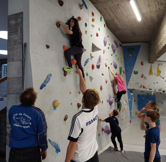 Am Nachmittag ging es zum Bouldern in die Kletterhalle. Die gut gekennzeichneten verschiedenen Schwierigkeitsgrade brachten jedem seine entsprechende Herausforderung. Am Ende probierten wir uns im Schnelligkeitsbouldern auf einer vorgeschriebenen Route.