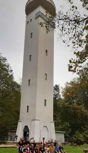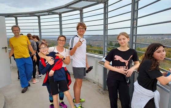 Auch der Freitag wurde mit 2 Stunden Wassertraining begonnen. Am Nachmittag sind wir bei schönstem Herbstwetter auf verschiedenen Wegen durch den Saarbrückener Stadtwald zum Schwarzenbergturm, dem höchsten Aussichtspunkt Saarbrückens gelaufen. Nachdem alle den Turm gefunden hatten, ging es hoch hinauf – wie viele Stufen waren es?