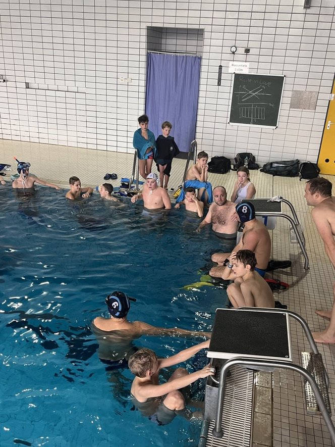 Am 12. Januar reiste Landesjugendtrainer Jochen Schottmüller mit seinem Trainerteam zur ersten diesjährigen Nachwuchssichtung des Badischen Tauchsportverbands in der Wettkampfsportart Unterwasserrugby nach Mannheim ins Seckenheimer Hallenbad. Die Kinder und Jugendlichen der Sharks aus Mannheim trainierten zusammen mit dem Nachwuchsteam des Bundesleistungszentrums Karlsruhe Malsch. Aufwärmen, Üben von Spielzügen, dann ein Trainingsspiel. Schließlich waren alle platt