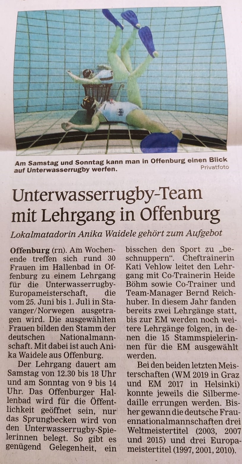 Der Lehrgang dient der Vorbereitung auf die Europameisterschaft Ende Juni in Norwegen. Rund um das Sprungbecken können sich Zuschauer und interessierte Wassersportler am Samstag und Sonntag ein Bild vom UW-Rugby auf höchstem internationalen Niveau machen.
