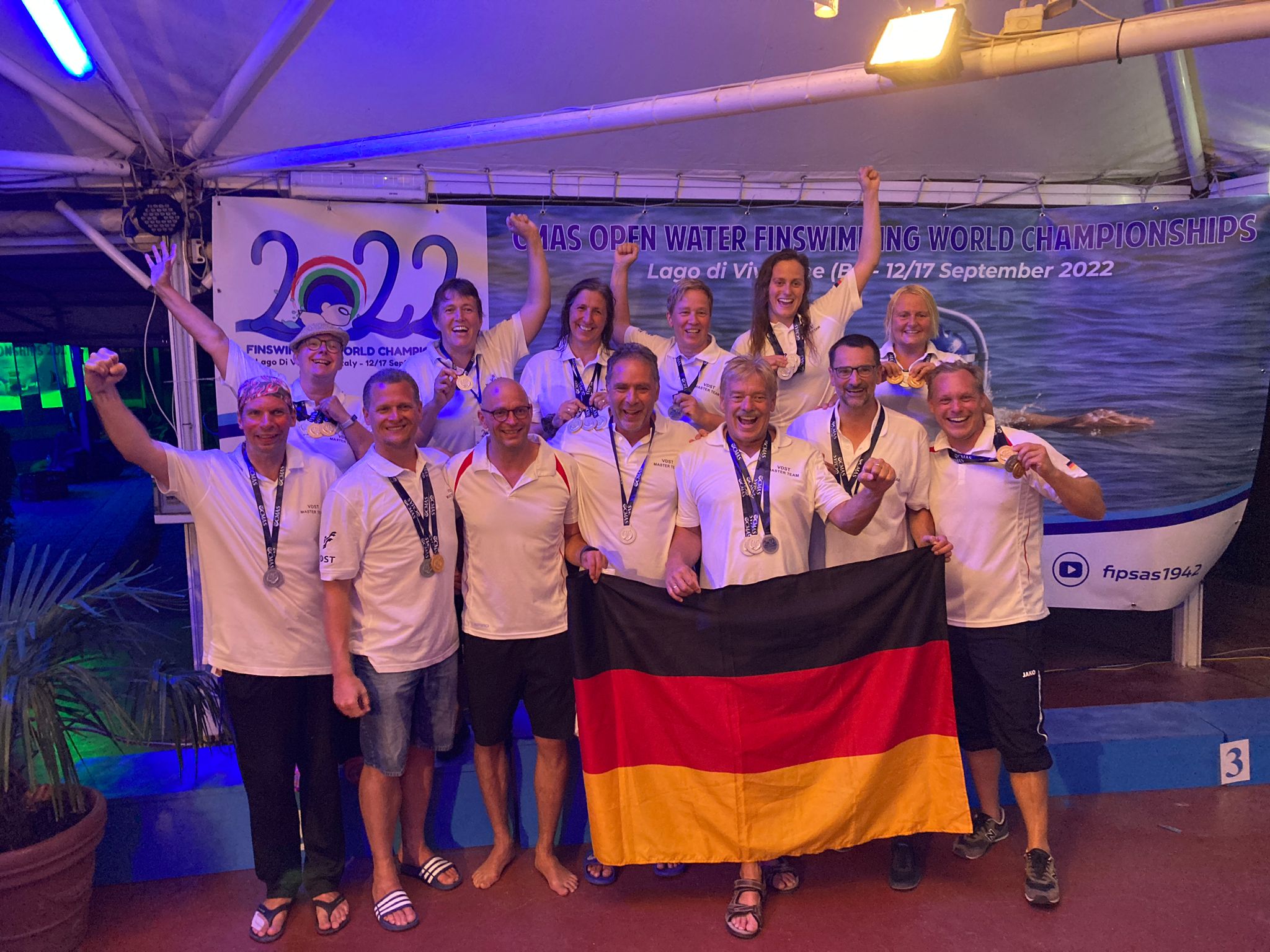 Staffeln sind immer Highlights, so war es auch am letzten Wettkampftag, an dem das VDST Team drei Staffel stellte. Die Staffelmannschaften mussten laut Reglement doppelt gemischt sein, das hieß zwei Damen, zwei Herren aber auch zweimal Bifins und zweimal Monoflossen.