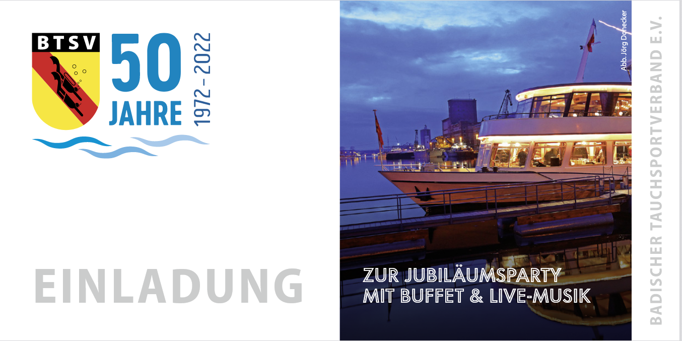 Im Jahr 2022 feiert der Badische Tauchsportverband e.V. sein 50-jähriges Jubiläum. Und seid versichert: Auch, wenn die Pandemie noch nicht überwunden ist – wir werden feiern! Wir werden Möglichkeiten finden und das Beste daraus machen.