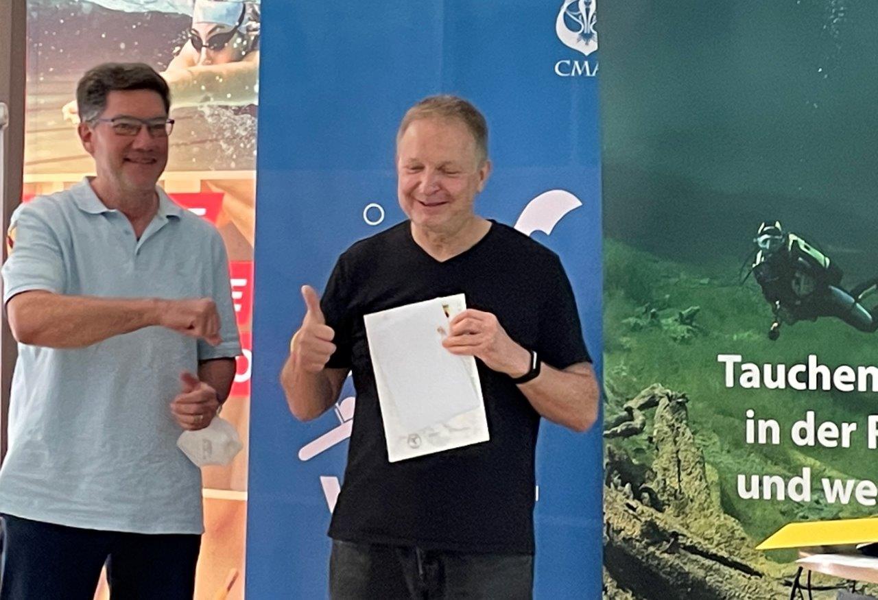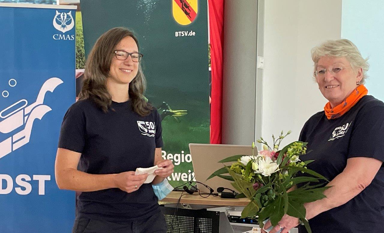 Für sein besonderes Engagement wurde Jo. Schwaemmle mit der silbernen Ehrennadel geehrt, der viele Jahre im BTSV den Bereich Apnoe betreut hat. Er hatte selbst einige Erfolge erzielt und anderen in vielen Seminaren Unterstützung und Hilfestellung gegeben. Dr. Horst Schaude erhielt ebenso die Silberne Ehrennadel des BTSV für seine „unglaublich gute, hilfsbereite, geduldige Unterstützung“ des Vorstandes und seine Arbeit als BTSV-Webmaster.