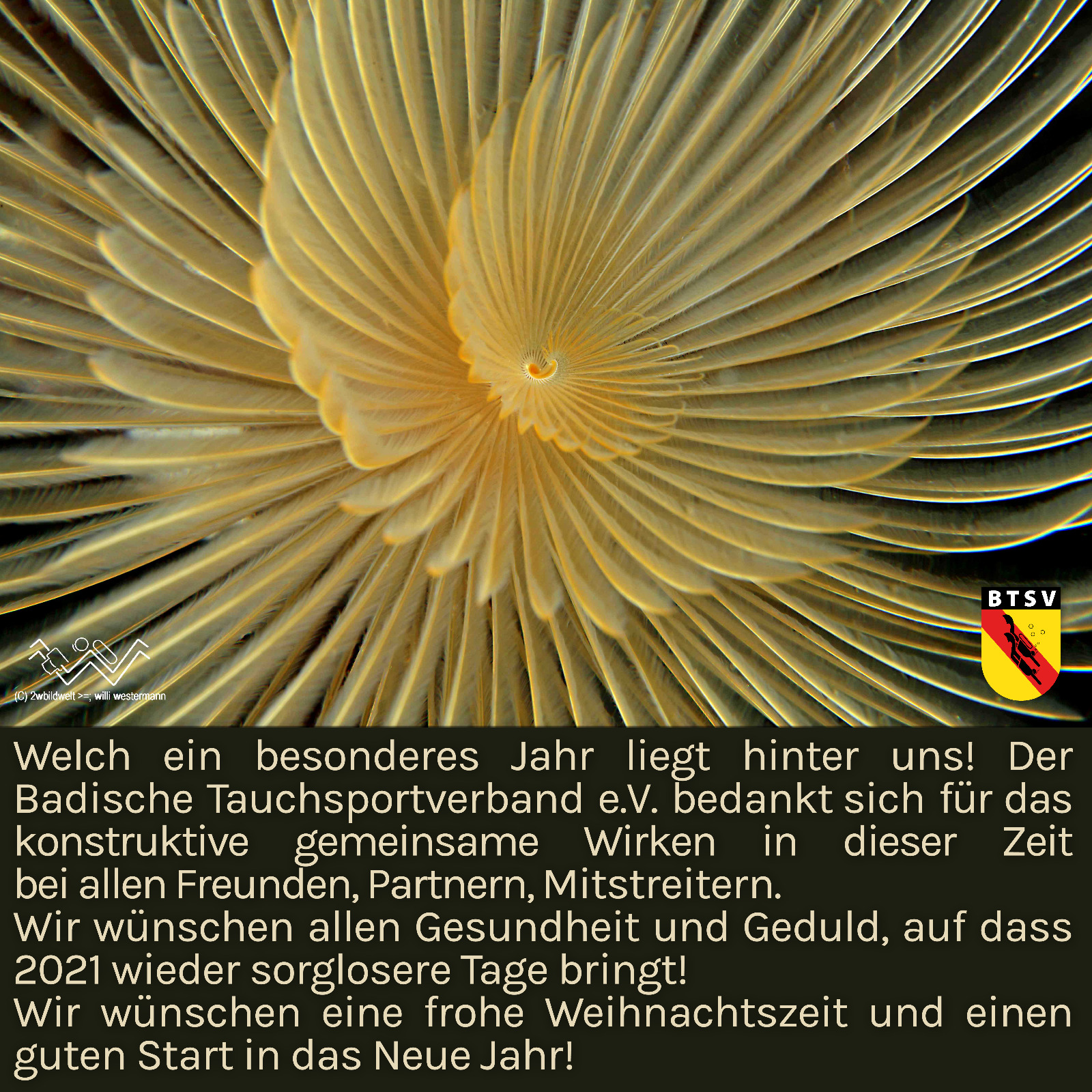 Präsidium und Vorstand des Badischen Tauchsportverbandes wünschen Ihnen und Euch von Herzen alles Gute zum Weihnachtsfest und zum Jahreswechsel.