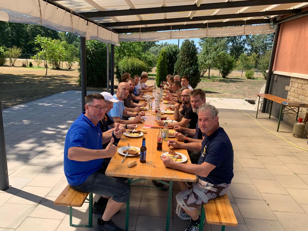 Im Vereinsheim angekommen, wartete bereits die frisch gebackenen Schnitzel, Kartoffelsalat und gesundes Obst darauf gegessen zu werden. Aber auch diese Herausforderung bestanden die Teilnehmer mit Bravour und alle waren sich einig, dass die Köche Achim und Werner hier vorzügliche Arbeit geleistet hatten. Ein großer Dank geht an sie und den TSC Graben Neudorf!