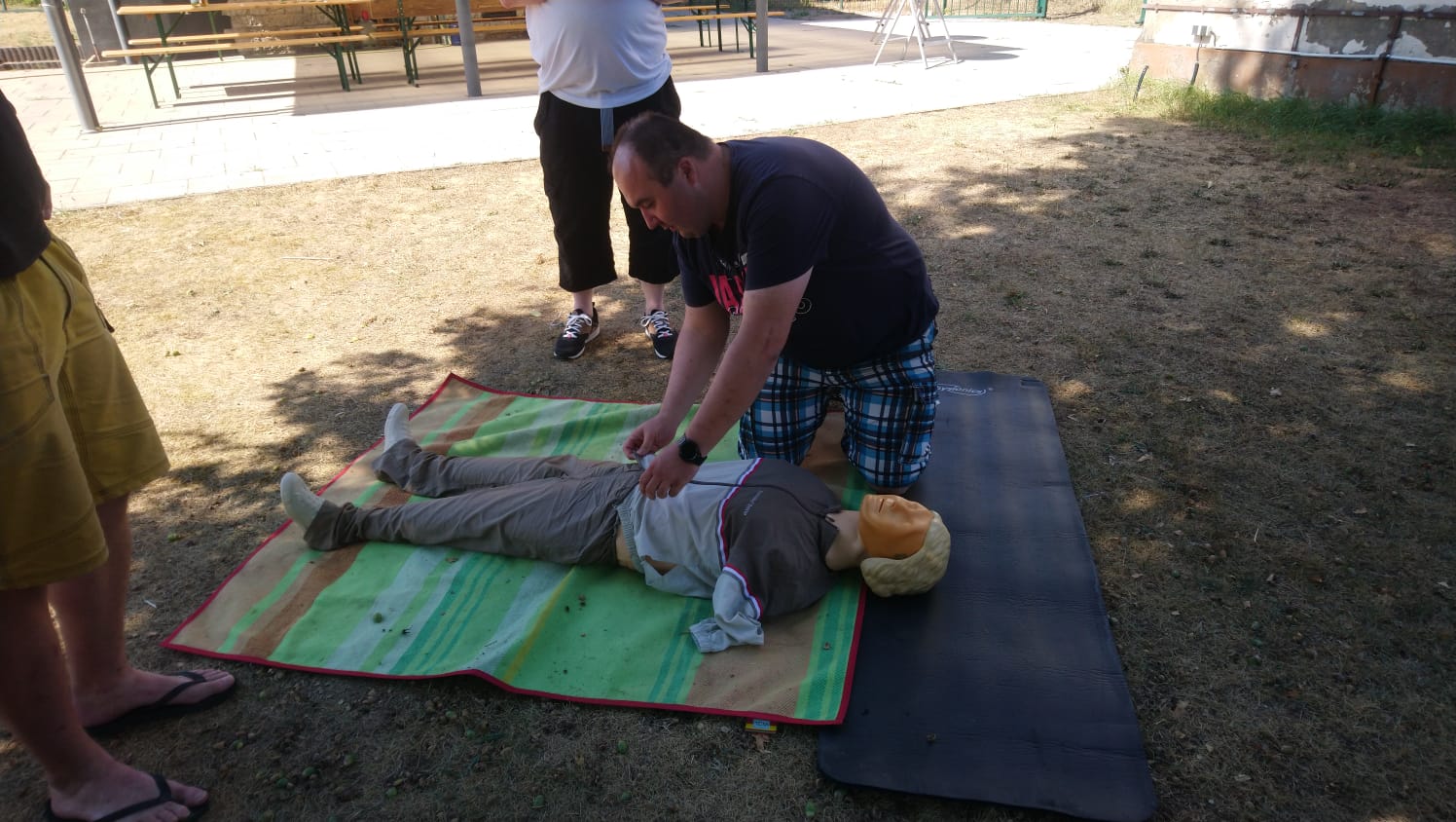 Frisch gestärkt ging es nun in den zweiten Teil des Tages. An drei verschiedenen Stationen wurde einiges geboten. An der ersten Station wurde von Jutta die HLW sowie die stabile Seitenlage aufgefrischt. Verschiedene medizinische Hilfsmittel wie Beatmung mit Ambubeutel geübt und auch einige Tipps zur Reiseapotheke geben.