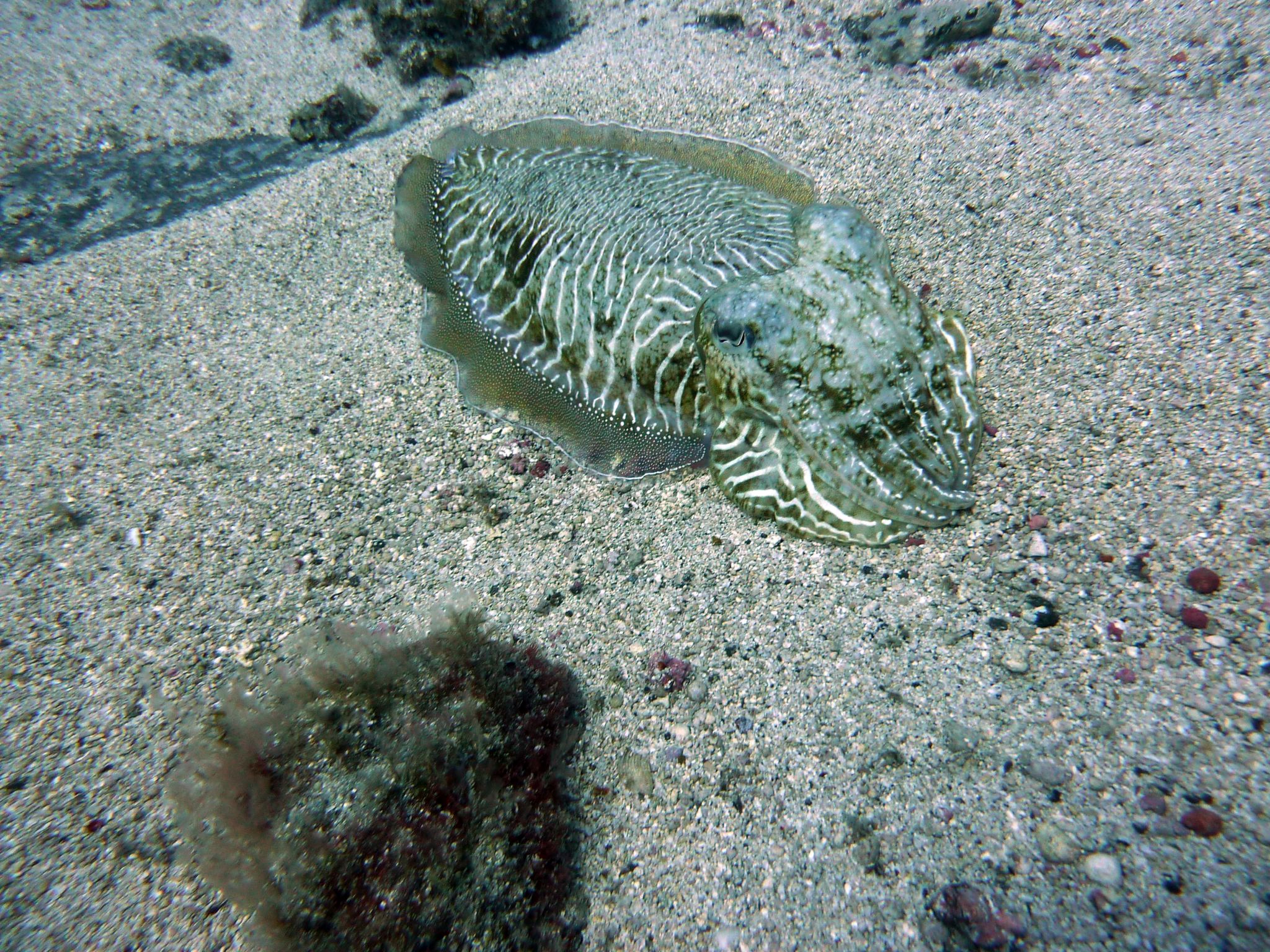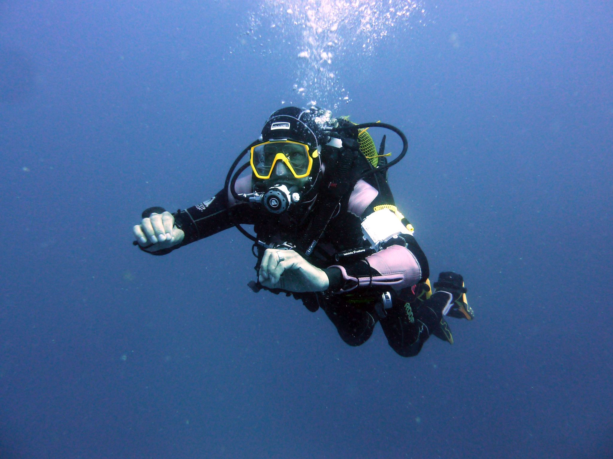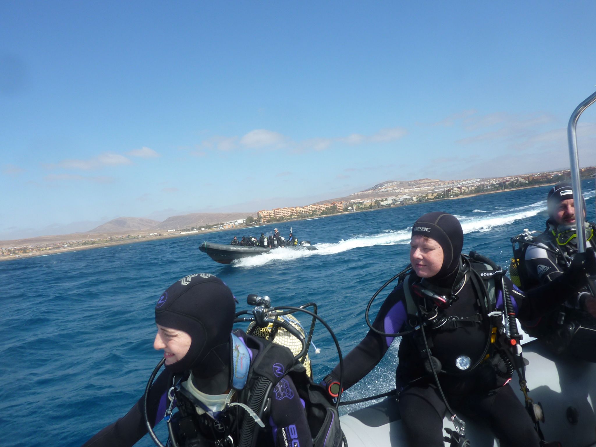 Auch wenn es der Gewöhnungstauchgang ist, hat dieser schon einiges für uns zu bieten, denn wir beginnen mit Übungen zum Wasser-Nase-Reflex, Bleicheck und Jacket an- und ausziehen am Boot bei 2-3 m hohen Wellen, Strömung und Windstärke fünf! Mit großer Mühe bewältigen die Anwärter die Aufgaben an der Wasseroberfläche, bevor es zum ersten Mal heißt: abtauchen.