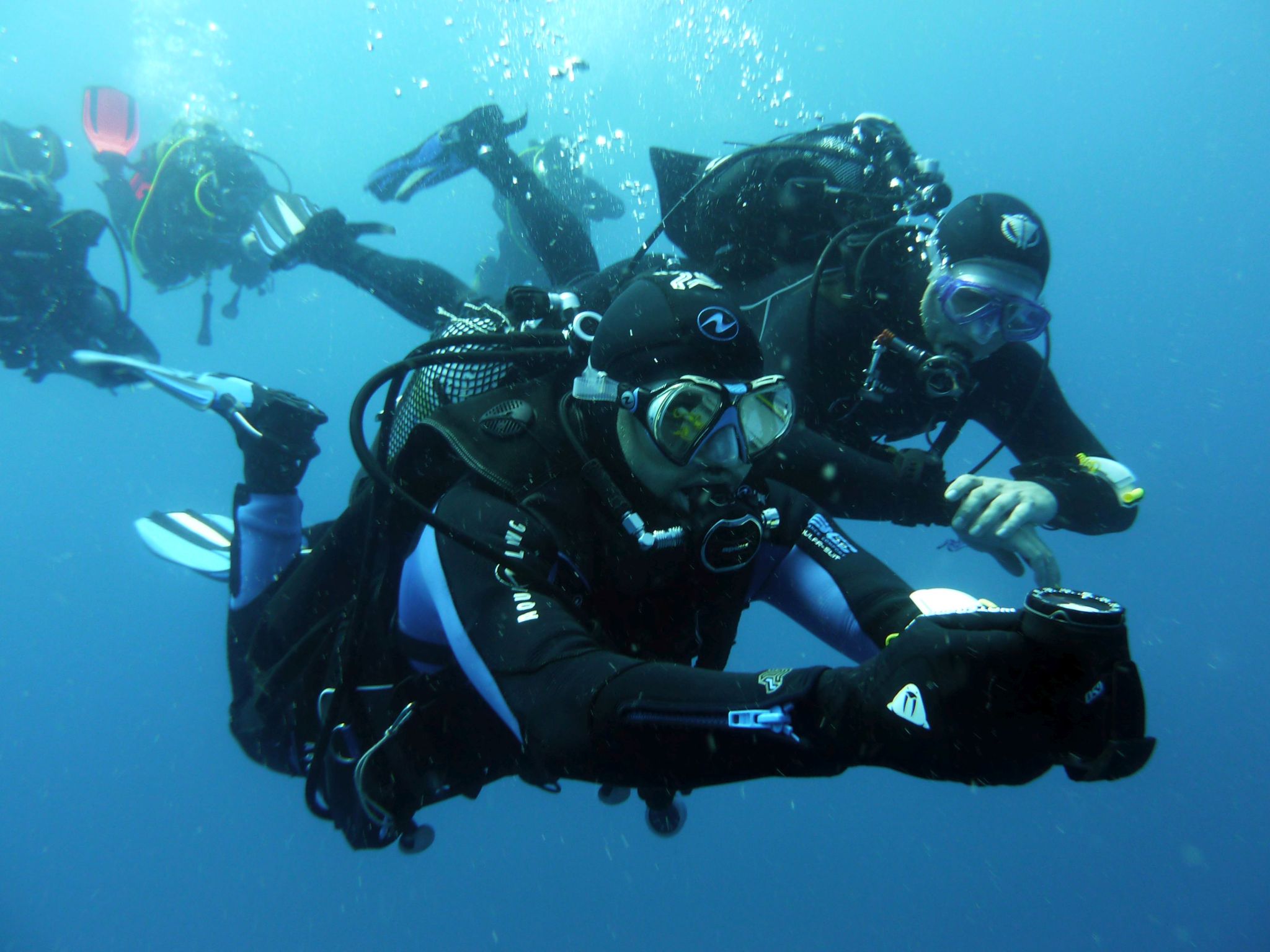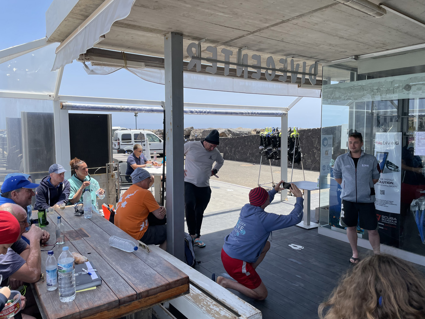Am zweiten Prüfungstag wird es ernst. So mancher Teilnehmer hatte eine unruhige Nacht und hat den Tauchgang immer wieder in Gedanken abgespult. Die Gruppenführer nahmen die Herausforderung an und nachdem TLvD Matthias den Ablauf und die Tauchplätze erläutert hat, stellt Referent Bastiaan den Prüfungstauchgang „Aufstieg unter Wechselatmung“ aus 40 Metern Tiefe vor.
