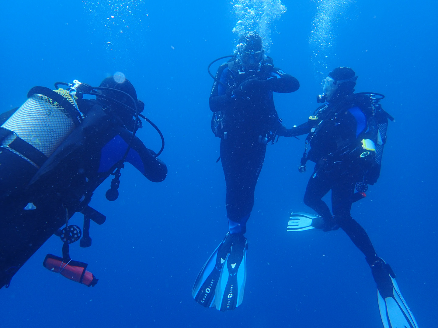 Heute ist der letzte Tag, an dem zwei Prüfungstauchgänge auf dem Programm stehen. Bevor wir uns aber mit dem Tauchen beschäftigen, gibt es erst einmal was zu feiern. Beim Frühstück wird für „es“ Heike ein Geburtstagsständchen geträllert. Danach sind wir pünktlich um 9 Uhr auf dem Weg zur Tauchbasis. Die Stimmung innerhalb der Gruppe ist super. Trotz Prüfung hat es den Anschein, dass wir doch mittlerweile ein bisschen entspannter an die Sache ran gehen und mit Zuversicht auf die Übungen schauen.