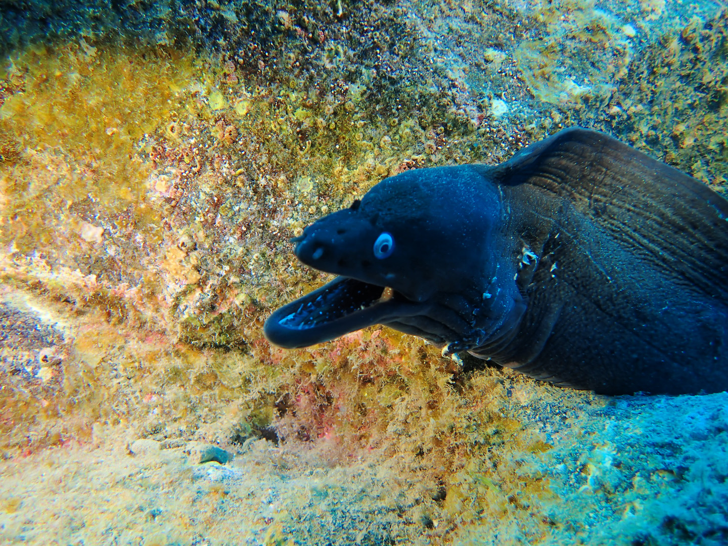 Nachdem auch dieser Tauchgang absolviert wurde, geht es zurück zum Hafen. Beim Anlegemanöver wird erschreckend festgestellt: Oh! Wir haben etwas in El Tazar vergessen. Das wichtigste Bindeglied zwischen Ankerseil und Boot, der Verbindungskarabiner, war noch an der Ankerboje dran. Volker nimmt es mit Humor und meint: Einer von euch muss ja noch Schwimmen, es sind auch nur 2,5 km.