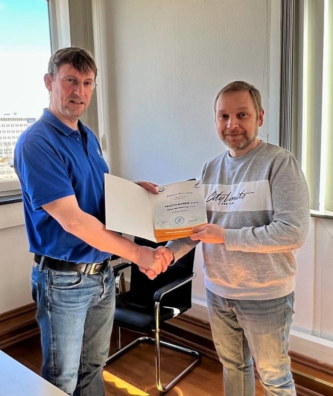 Leider zunächst durch Corona ausgebremst konnte Markus, nach bestandener Theorieprüfung am 03.04.22, nun seine TL3 Urkunde aus den Händen unseres Bundesausbildungsleiters Hagen Engelmann in Empfang nehmen.