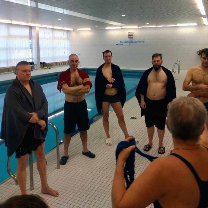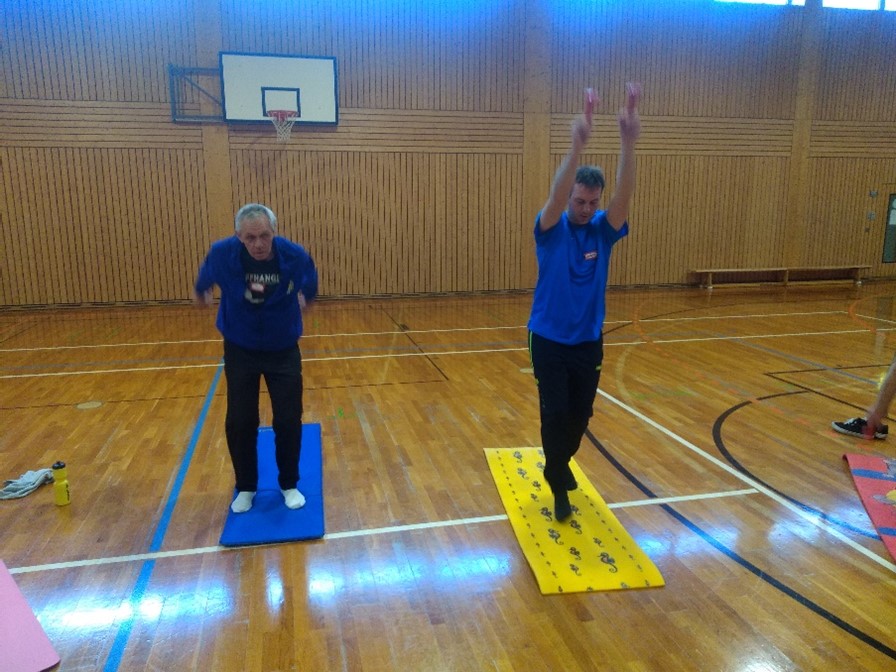Ein gelungener Tag in der Sportschule, mit Aktivitäten in der Sporthalle und im Schwimmbad. Ausgiebige Übungen zur Körperwahrnehmung und zur Balance standen am Anfang. Erste Runde im Schwimmbad: was bieten die Halle, Wände, Sitzbank an Übungsmöglichkeiten? Nach der Mittagspause haben wir uns wieder in der Halle getroffen. Faszien-Übungen, Stretching und Atemübungen standen auf dem Plan.