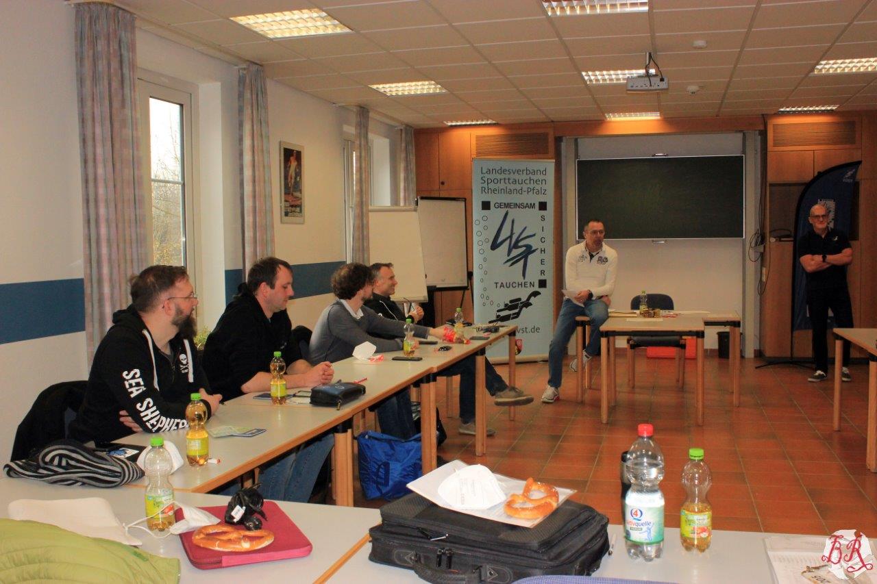 Da die Vorbereitung durch die Auswirkungen von Corona virtuell durchgeführt werden musste, fand im Unterrichtssaal ein erstes persönliches Kennenlernen von Prüfern und zu Prüfenden statt. Im Nachgang der Vorstellungsrunde wurden die Kurzfragen von den Anwärtern mit großer Sorgfalt beantwortet. Durch die Küche des Hauses wurden wir, nach Abschluss dieser Aufgabe, mit einem warmen Abendessen verwöhnt. Den Abend ließen die Teilnehmer und Prüfer in einer lockeren Runde ausklingen, in der so manches Thema noch etwas vertieft und die ein oder andere Erinnerung aus dem taucherischem Leben geteilt wurde.