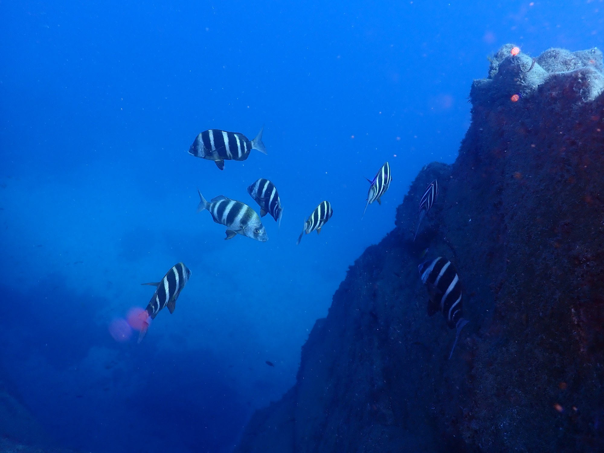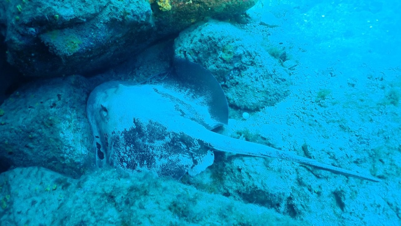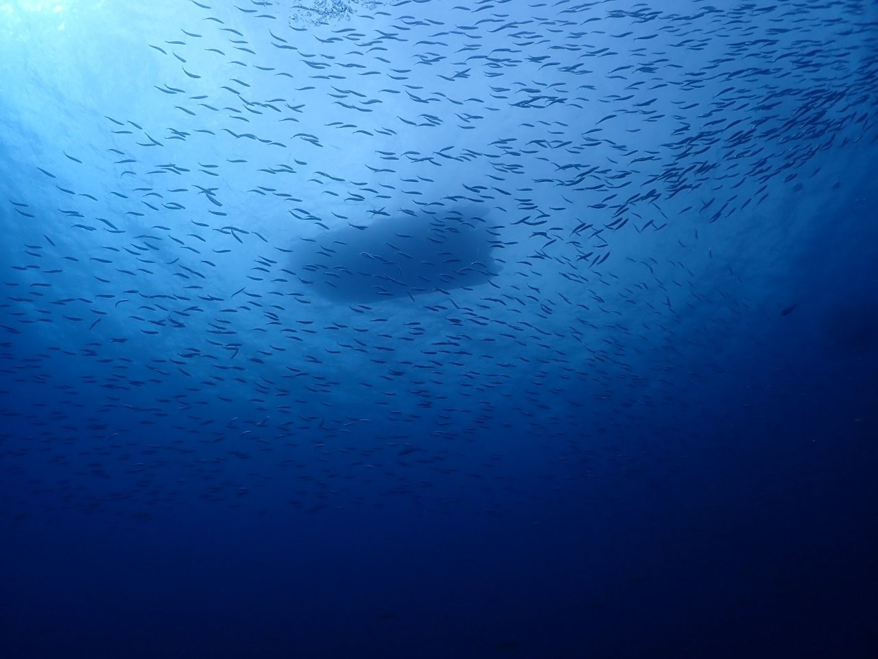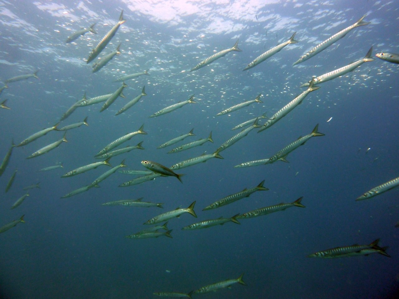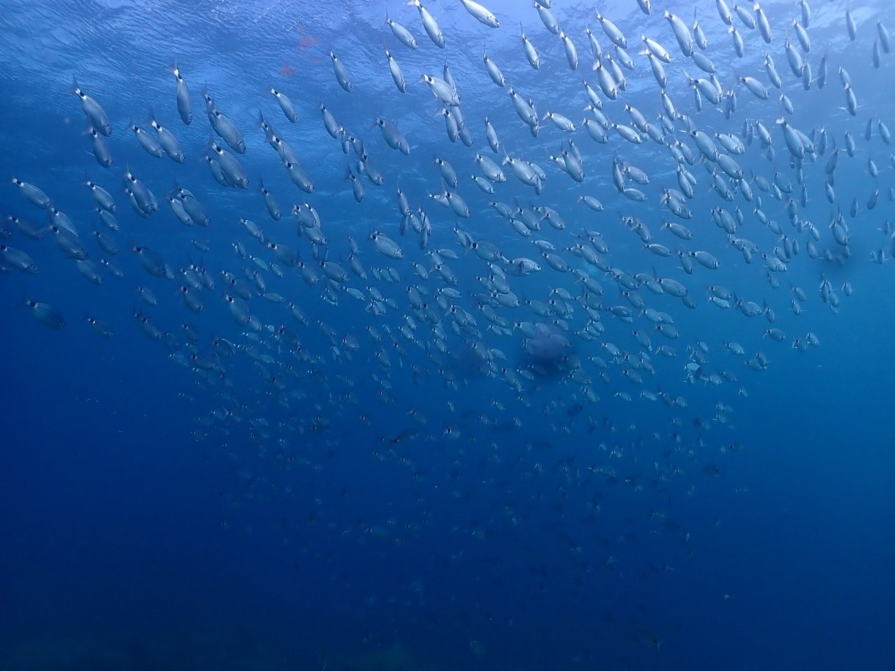 Der erste Tauchgang führte uns auf 40 Meter Tiefe, inklusive sternförmigem Aufstieg – und der ersten Begegnung mit Engelshaien. Beim Aufstieg begleiteten uns Sardinenschwärme und jagende Barrakudas – ein echtes Highlight!