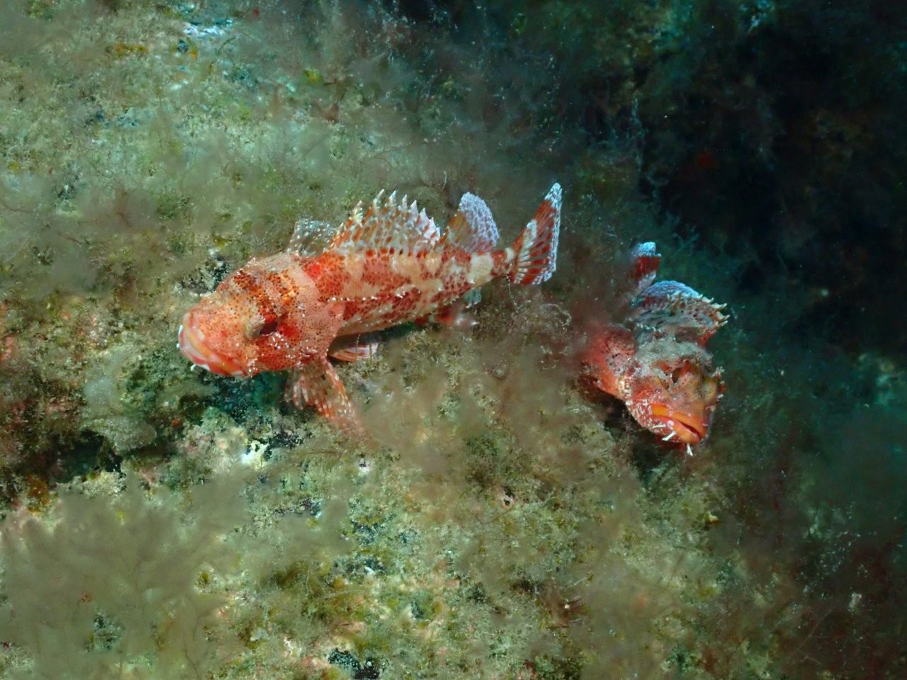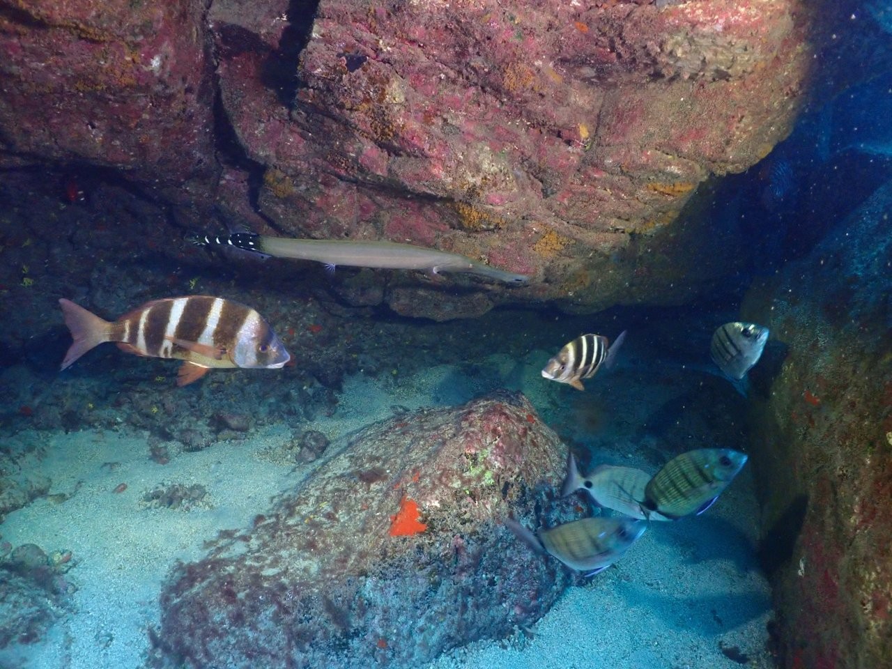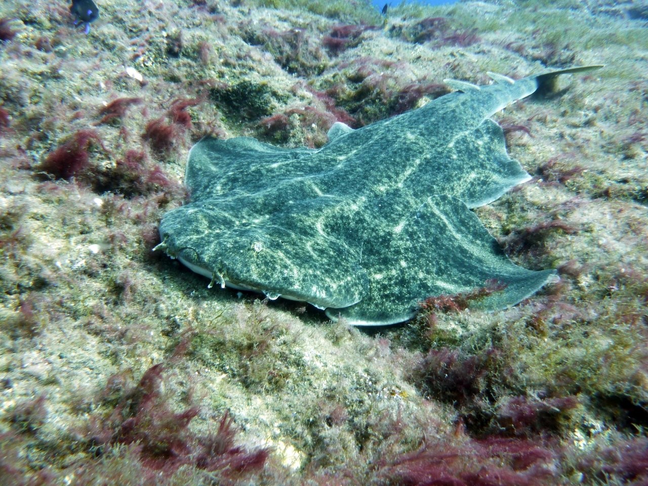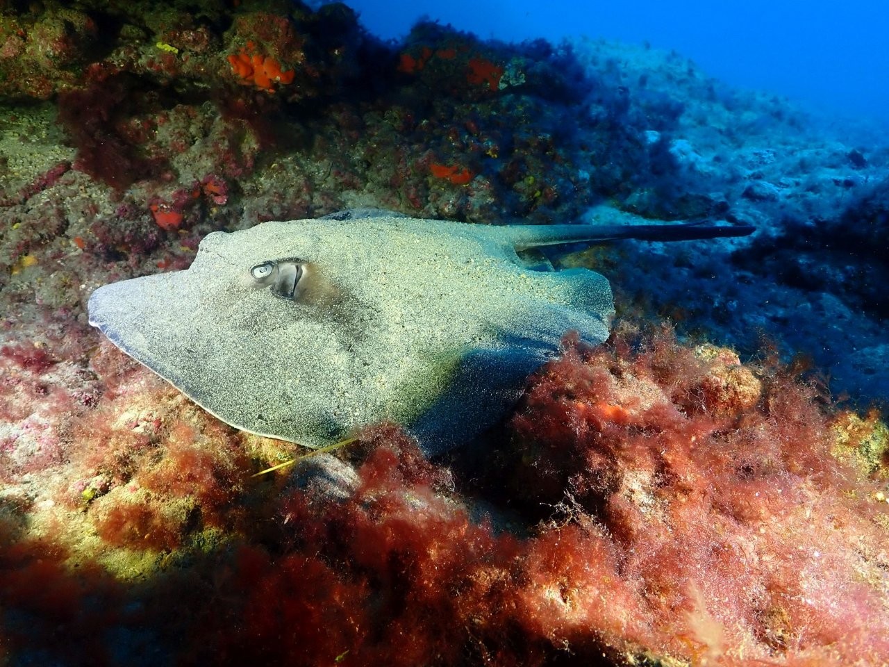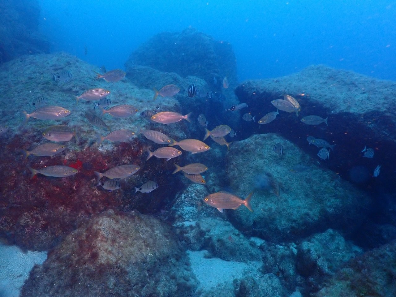 Der erste Tauchgang führte uns auf 40 Meter Tiefe, inklusive sternförmigem Aufstieg – und der ersten Begegnung mit Engelshaien. Beim Aufstieg begleiteten uns Sardinenschwärme und jagende Barrakudas – ein echtes Highlight!