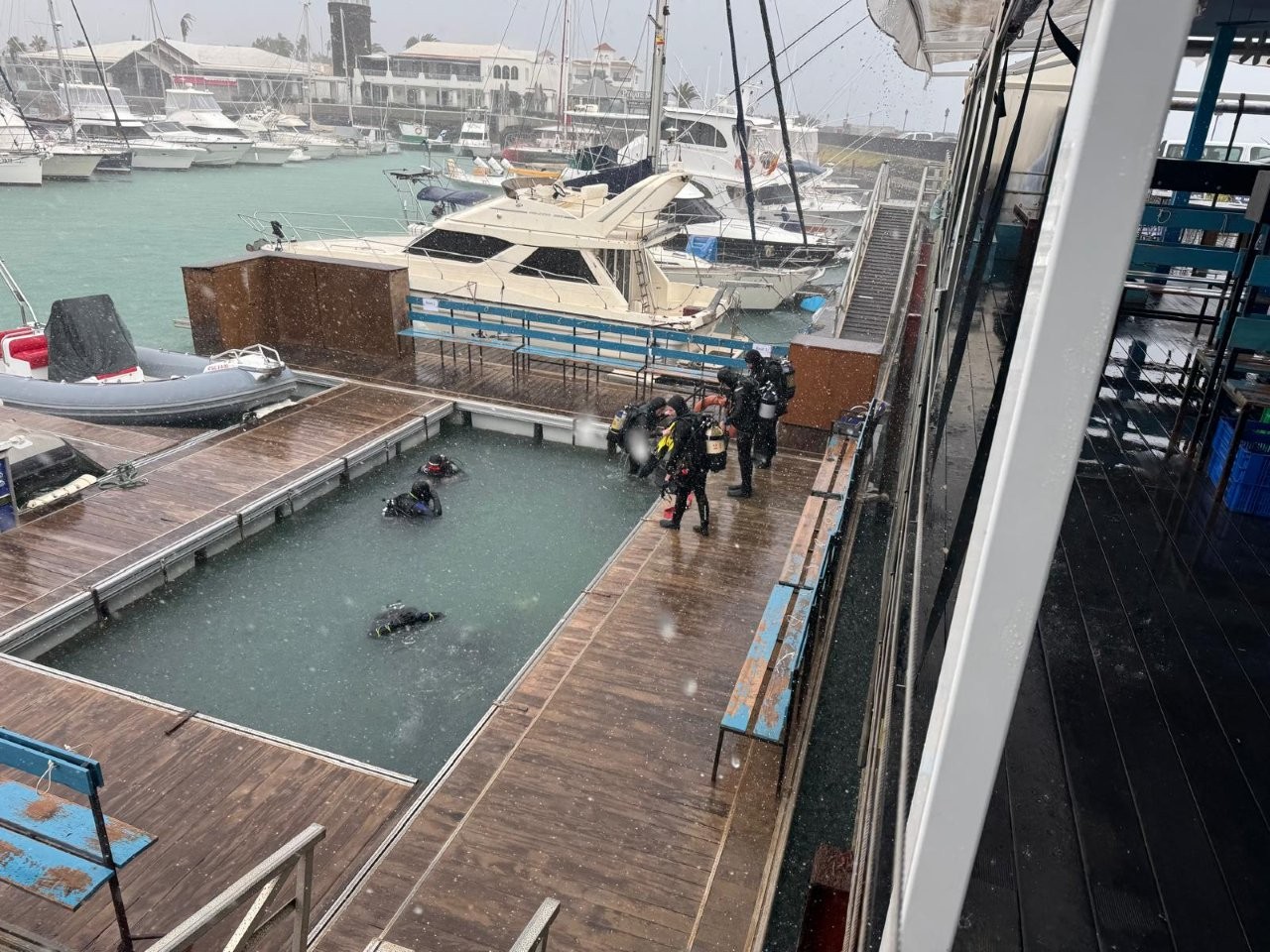 Daher entschieden wir, den letzten Ausbildungstauchgang im „Pool“ – dem Meerwasserzugang der Basis direkt zum Atlantik – durchzuführen und den ersten Prüfungstauchgang zu verschieben.