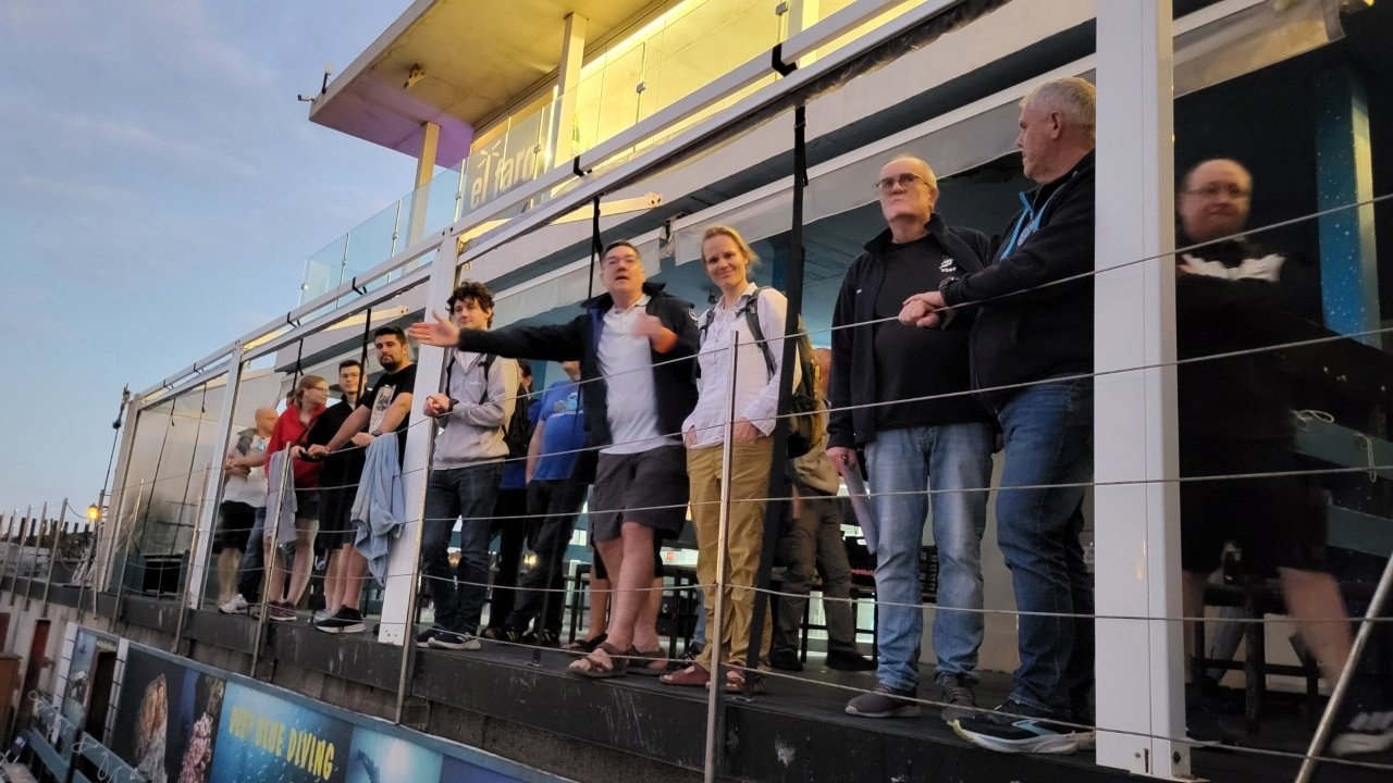Nach dem Einchecken im Hotel trafen sich alle am späten Nachmittag an der Tauchbasis. Voller Vorfreude erhielten wir dort von Volker Berbig eine erste Einweisung in die Tauchbasis – morgen folgt dann die ausführliche Einführung in die Basis und die Abläufe.