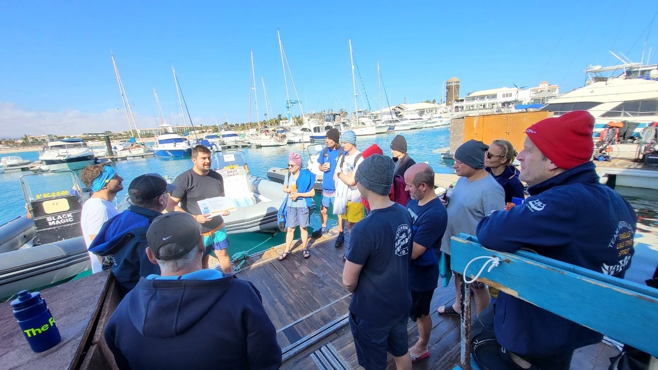Stand in der Ausschreibung wirklich „Praxisausbildung und Praxisprüfung für TL1“? Oder stand dort „Tauchausflug Fuerteventura Gruppe Südwest“? Wir werden es vermutlich nie mehr erfahren. Es soll den einen oder anderen Teilnehmenden gegeben haben, der vom Zweiten, also einem gemütlichen Tauchausflug, ausgegangen ist.