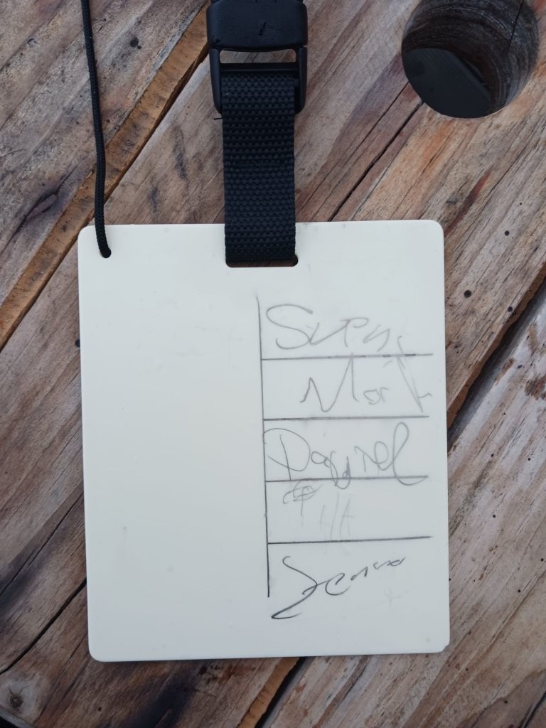 Doch zuerst sollte es noch vor dem TG ein Apnoe-Tieftauchen geben: Auf zehn Meter Tiefe durfte jede*r den eigenen Namen auf eine Tafel verewigen. Kurzfassung des Endergebnisses: Alle haben es geschafft – die Namen waren zumindest zu erahnen. 🙂